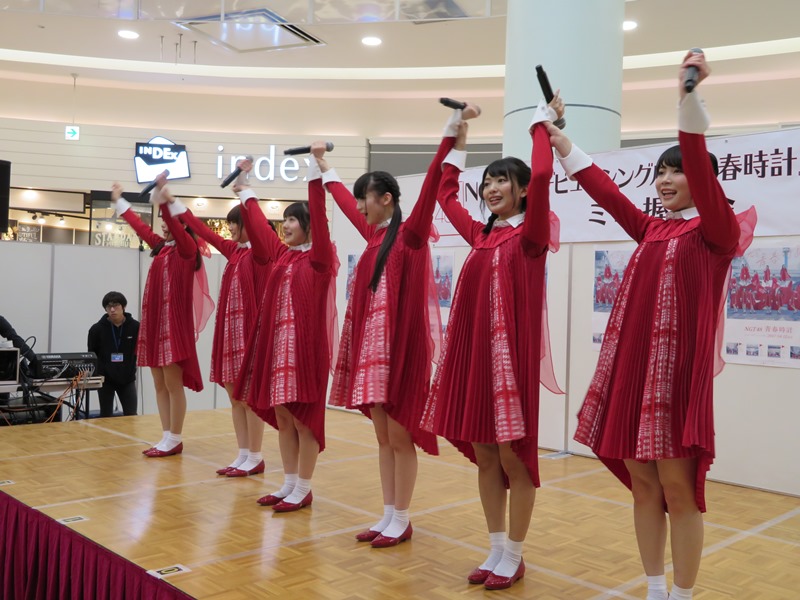 名古屋と大阪では、昨日に続き、ショッピングモールでのミニ握手会を開催。これまで、AKB48 グループの握手会には参加してきたが、NGT48単独での握手会は、今週末が本格スタートとなる。握手会前のミニライブでは、『青春時計』や『暗闇求む』をパフォーマンス。イベントを目当てに集まった人でけでなく、ショッピング客に向けても、気合十分のパフォーマンスで、NGT48の存在を積極的にアピールした。