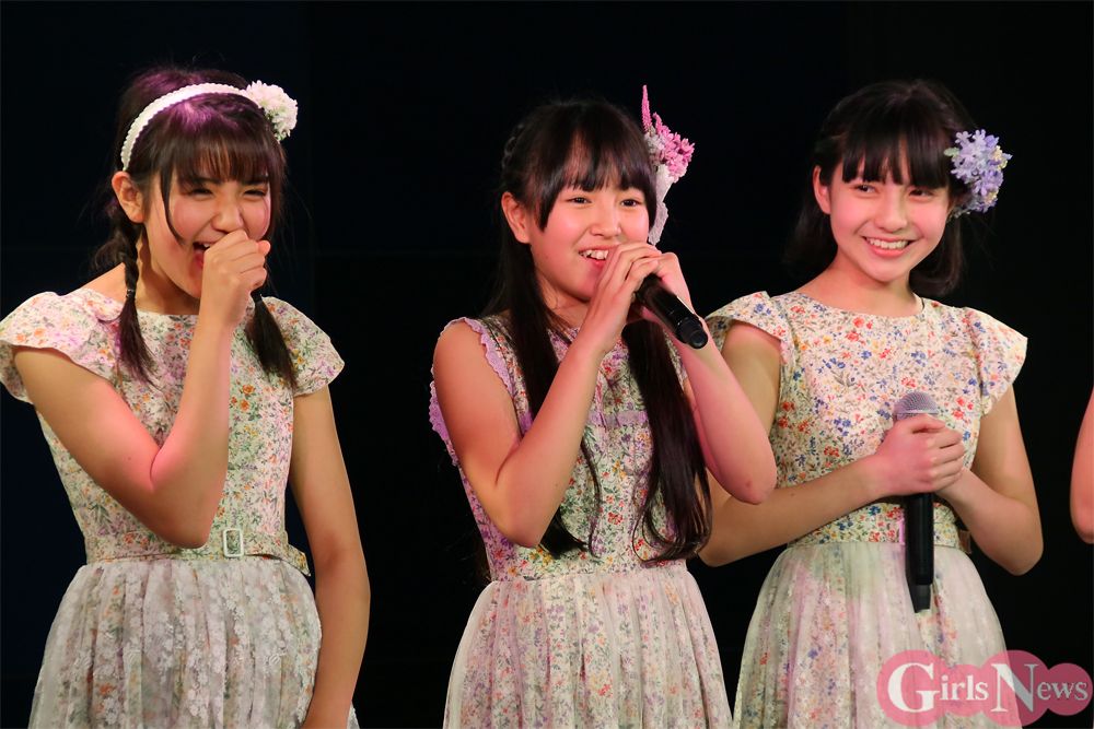 公演を終えた新メンバーたちは、「お客さんがいっぱい応援してくれて嬉しかった」(寺島)、「こんなにたくさんお客さんがいるなんて思ってなかったけど来てくれて嬉しい」(塩野)、「誕生日を祝ってもらえて嬉しかった」(戸羽)と、それぞれ喜びを言葉にした。