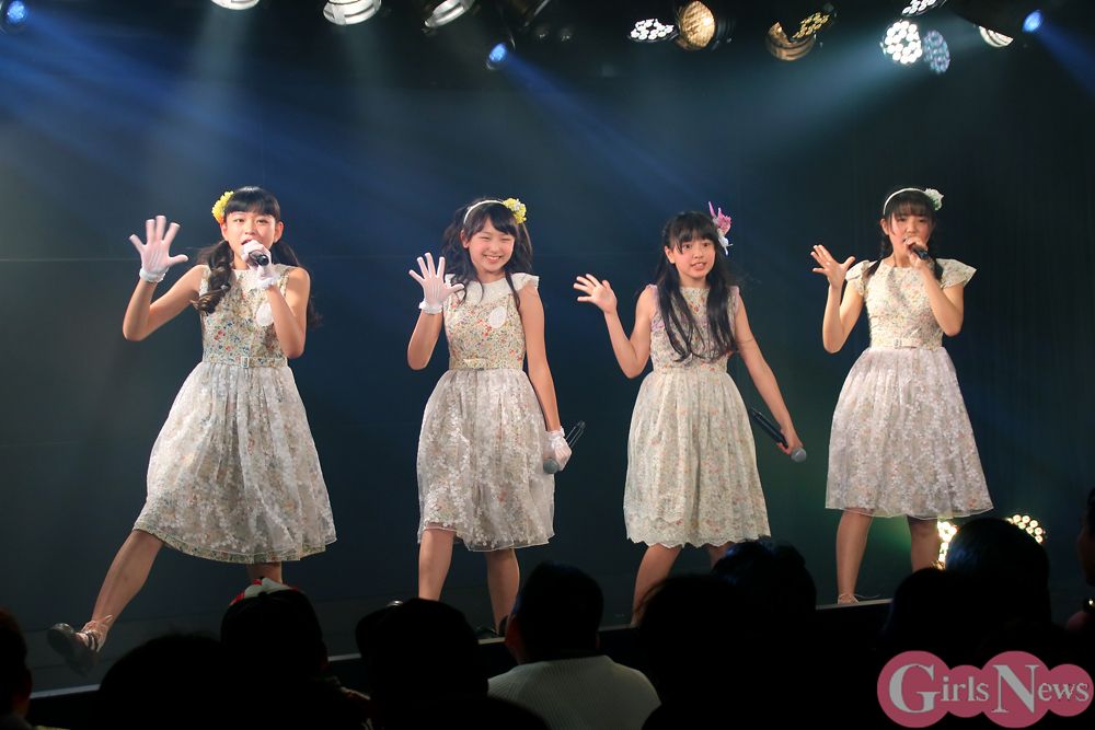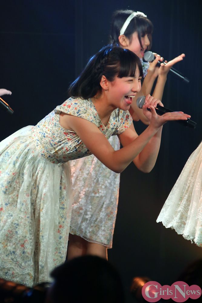 4月から新しく加わったのは、最年少記録を更新した戸羽望実(小6)をはじめ、寺島和花(中2)、塩野 虹(中1)のまだ幼さの残る3名。初めてのステージで満員のお客さんを前に緊張しながらも、堂々としたパフォーマンスを披露した。くったくのない明るさの3人は、すでに先輩たちにもすっかり溶け込んでいるようだった。