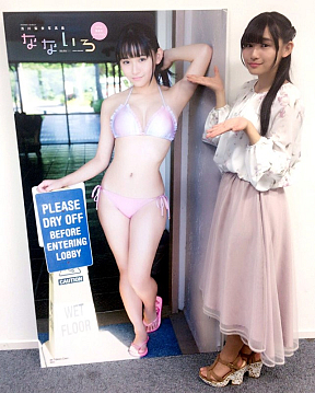 浅川さんは写真集を開封すると「すごい!!!」と大はしゃぎ。表紙のポーズと同じポーズで、等身大写真集の前に立つと、ちょうど重なり、まさに等身大写真集となっていた。