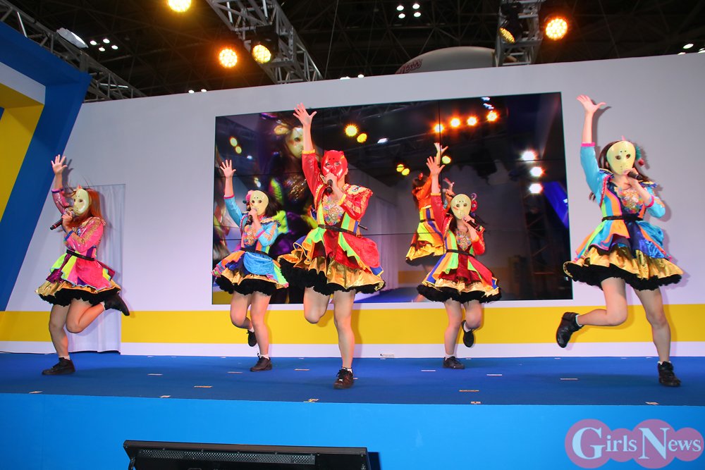 アイドルグループ・仮面女子が東京ビッグサイトで開催された「東京おもちゃショー2017」のタカラトミーブースにゲストとして出演し、ミニライブを行ないイベントを盛り上げた。