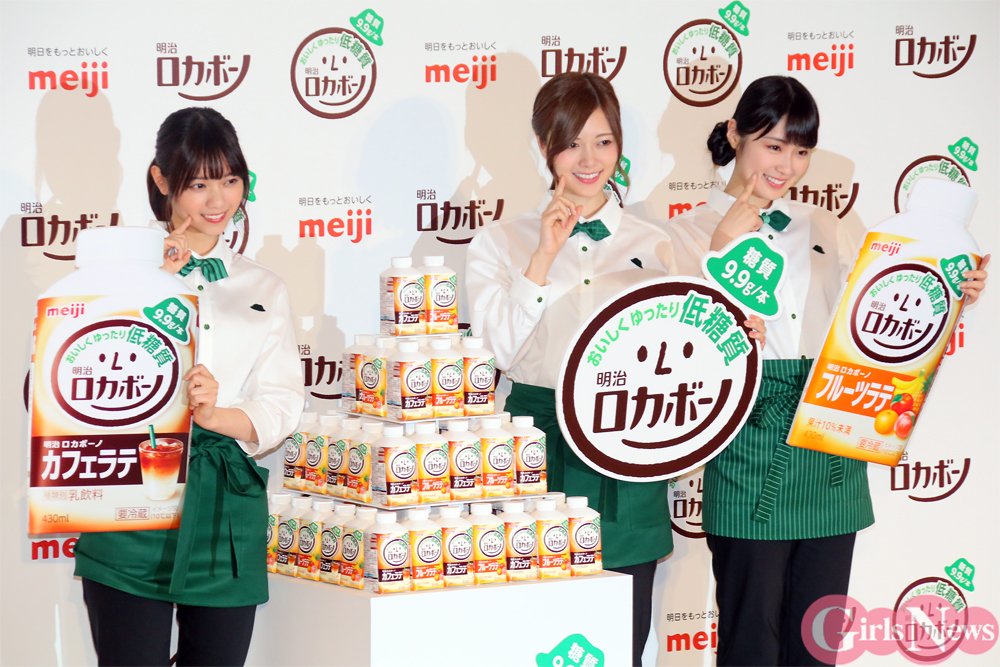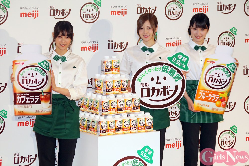 乃木坂46の白石麻衣、西野七瀬、高山一実が6日、都内で行われた「明治ロカボーノ」の新商品発表会に出席した。