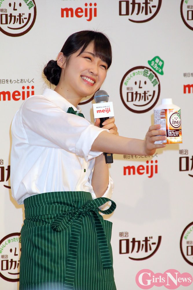 同商品のイメージキャラクターを務めることとなった3人は新CMで披露したカフェ店員の姿で登場した。白石さんは「同じように見えますが、それぞれ蝶ネクタイがちょっと違うんです」と嬉しそうに紹介し、西野さんも「帽子の刺繍がワンポイントです」とアピールした。