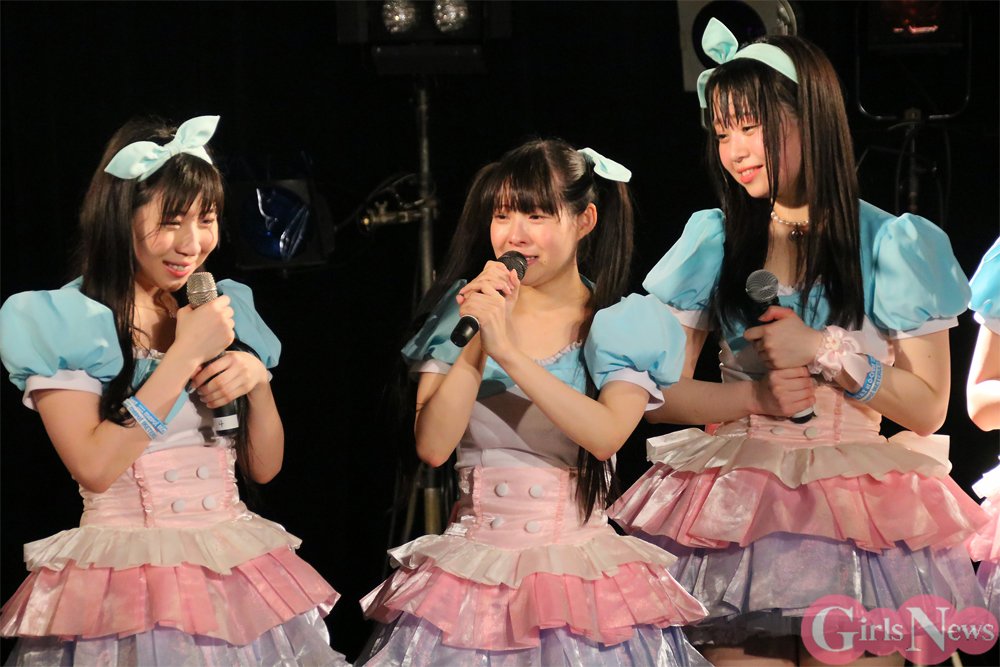 由良乃さんは「卒業が決まったのが急だったので、誰も公演に来てくれない夢を見るほど不安だった。こんなにたくさんの人が来てくれて嬉しい」とホッとした表情で客席を眺めた。「ライブ中もメンバーが“好き”とか言ってくれて、琴音さんはキスして来たんですけど、その後もずっと耳元で“大好きだよ”って言ってきて、笑うしかなかった」と明かすと、周りから「怖いよ」と深すぎる愛に呆れる声が聞こえた。