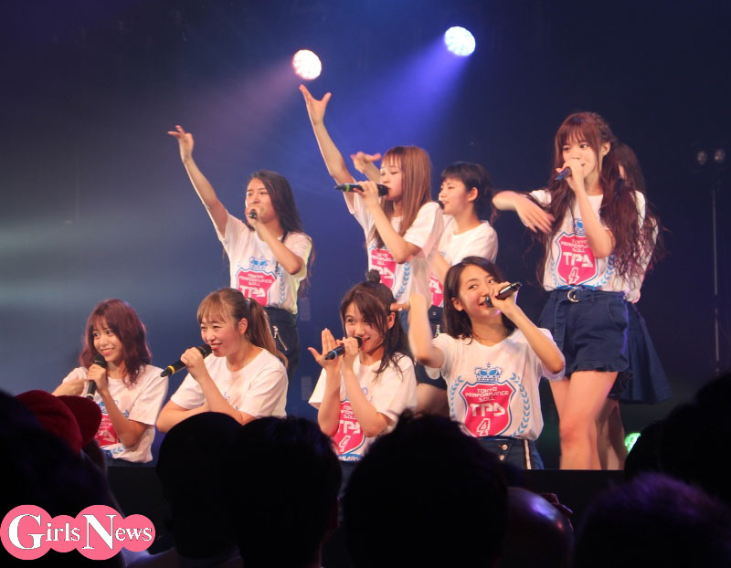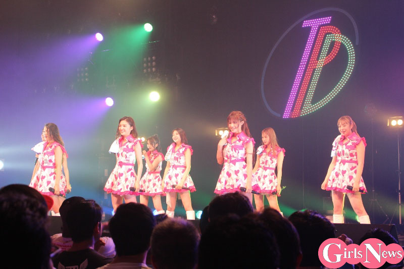 この日のステージでは、上西星来さんと脇あかりさんによる新ユニット“赤の流星”のステージからスタート。その後は、1月に発売された1stアルバム『WE ARE TPD』収録曲をはじめ、先代曲のカバー、さらに数人のユニット単位の曲など、4年間で生まれた多数のレパートリーから満遍なく披露。実は、この日のセットリスト、すべてメンバーたちで考えたそうだ。