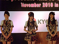 会見では、公演開催の趣旨や内容、メンバーの意気込みなどを発表。前田敦子さんは「(日本を飛び出してのライブなので)おもちゃ箱から飛び出したキラキラした人形のようなパフォーマンスができたらと思います。」とコメント。さらに総選挙で1位を獲得した大島優子さんは「AKB48は毎日日本の秋葉原でショーをしています。マカオはエンターテインメントのショーが盛んということで来るのがとても楽しみでした。」と、また「マカオの印象は」という質問にはマカオタワーで、バンジージャンプしたい。11月に来た時、挑戦したいです。と答えた。