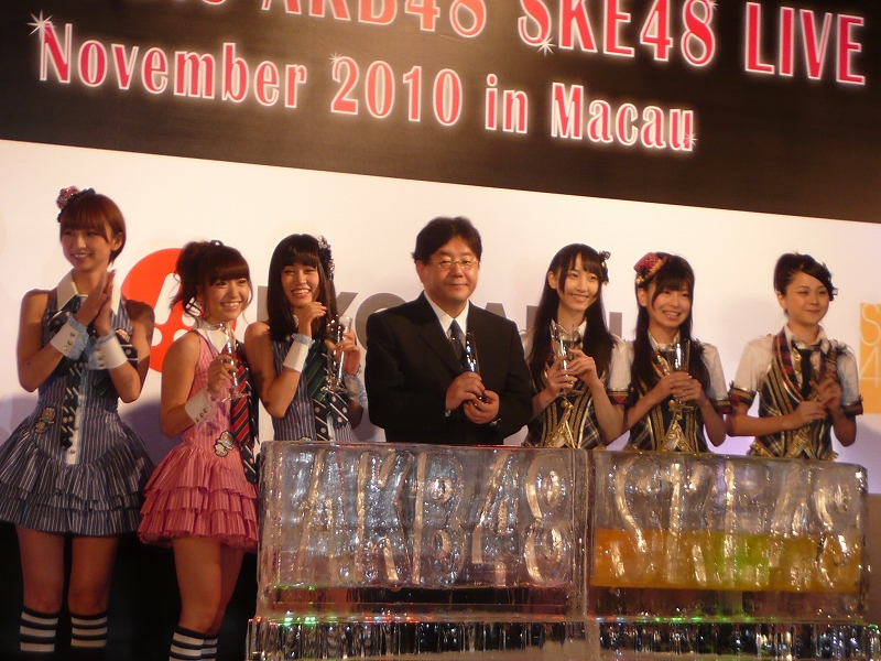 日本のアイドルグループAKB48と、その姉妹グループSKE48。両グループが混合のチームを結成し海外にて公演を行うのは、今回のマカオ公演が初。 その記念すべき公演に先立ち、6月10日現地・マカオのMGMグランド マカオ ホテル Grand Ballroomにて開催概要発表記者会見が実施され、秋元総合プロデューサーおよびAKB48から前田敦子さん、大島優子さん、篠田麻里子さん、SKE48から松井玲奈さん、大矢真那さん、木下有希子さんが出席。会場には、マカオだけでなく、上海や中国本土からもメディアが駆けつけ、早くも注目の高さを伺わせた。