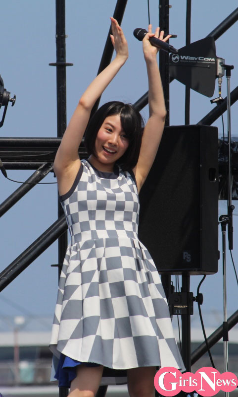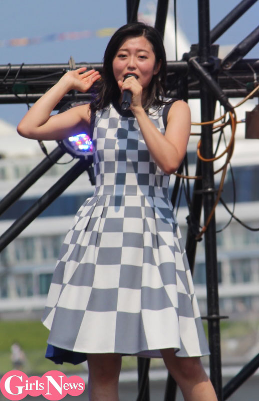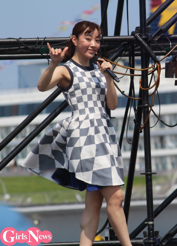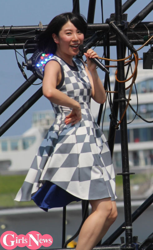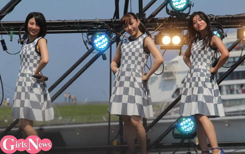 二日目の“3番地”会場のステージでは、前日とは変わって、チェックのワンピース衣装の3人。快晴の空の下、『Oh yeah!』『For you』『step by step』と、爽快感のあるナンバーで盛り上げた。