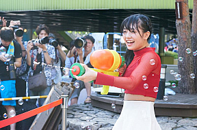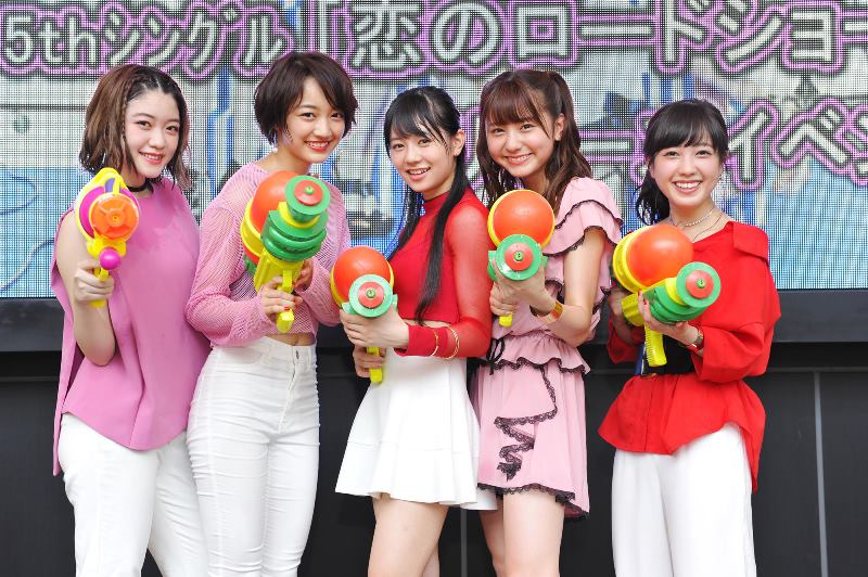 5人組ダンス&ボーカルグループ・フェアリーズが、一足先に夏を先取ったイベント『フェアリーズスプラッシュ!水ぶっかけイベント』を9日、東京ドームシティラクーアガーデンステージで開催。その名の通りにメンバーが大きな水鉄砲やバケツを持って来場者に水をかけるイベントで、今年は7月5日に発売の新曲『恋のロードショー』のリリースイベントとして行われた。
