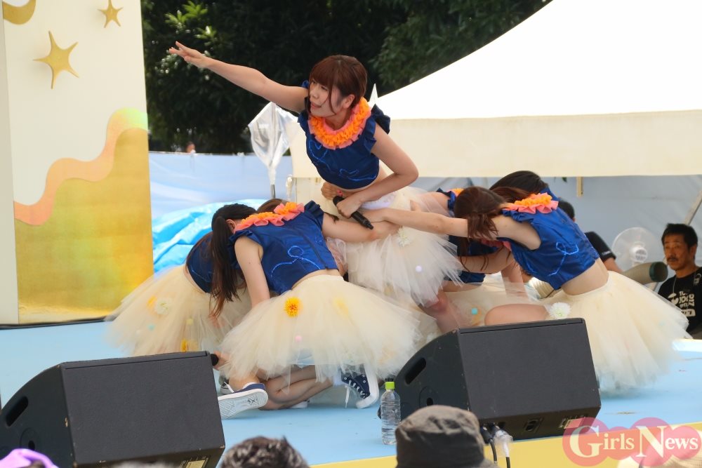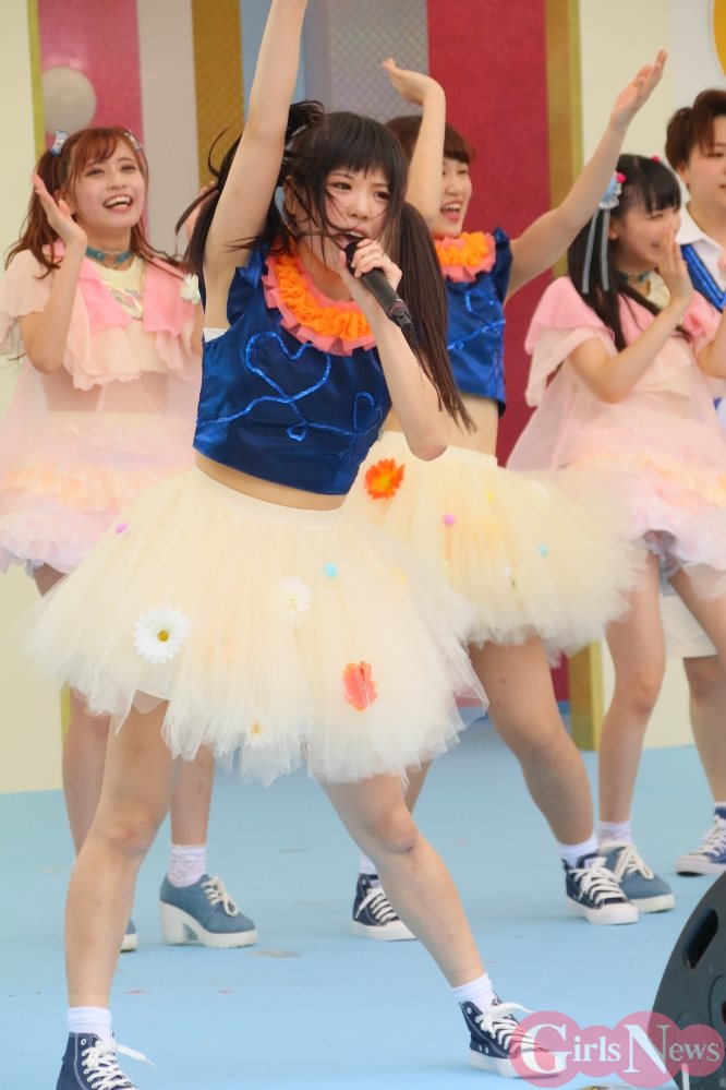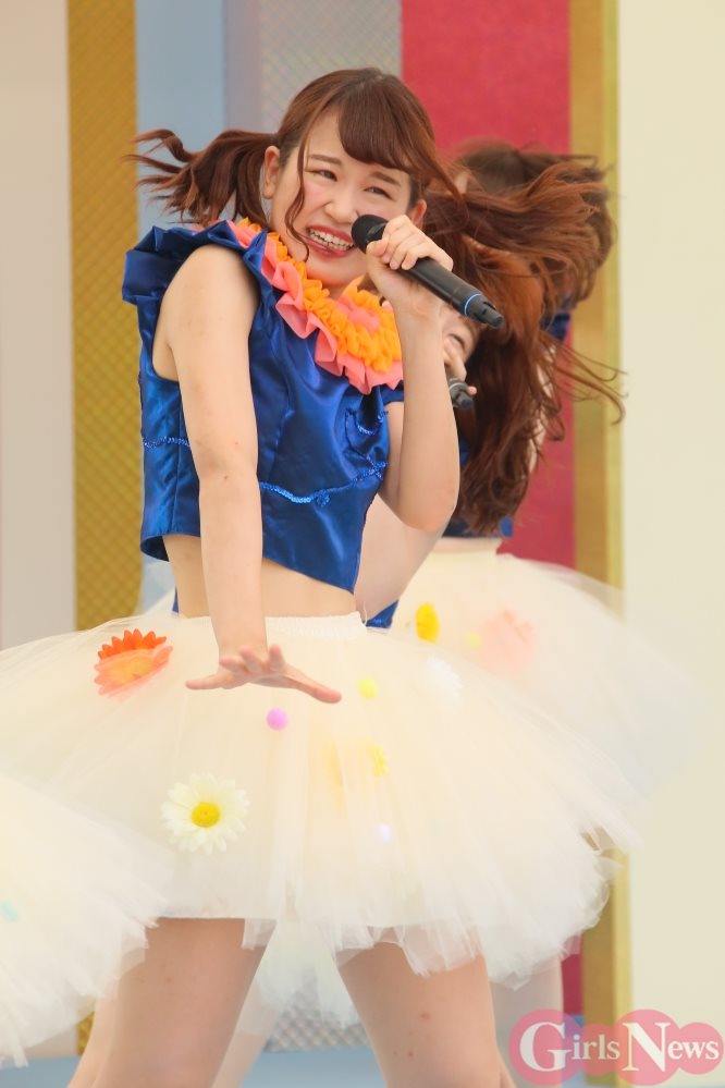 私は青SHUN学園に入ってまだ半年なんですが、アイドルを始めたのがすごく遅かったので、周りでも最年長クラスだと思います。でも、青SHUN学園もずっと苦い思いをしながらやっとTIFに出場することができましたし、私も夢を諦めずにやってきてよかったと思います。“諦めずに言い続けて努力すれば夢は叶う”っていうことを、みんなにも実感して欲しいです。今日のスマイルガーデンは“最高の現場にするぞー!”って言い続けて目標にしてきた場所なのですが、日本一、世界一の最高の現場になりました。地球が揺れたのを感じました。震源地はココです!(笑)