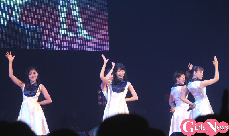 この日は開演前から場内は異様な盛り上がりに。そして暗闇から5人のシルエットが現れると場内の興奮はマックスに。そんな中登場した5人、ハッピーな空気感がいっぱいの『ストーリー』からスタートした。衣装は5人が一緒にDorothy Little Happyに在籍していた時に着ていたものだ。