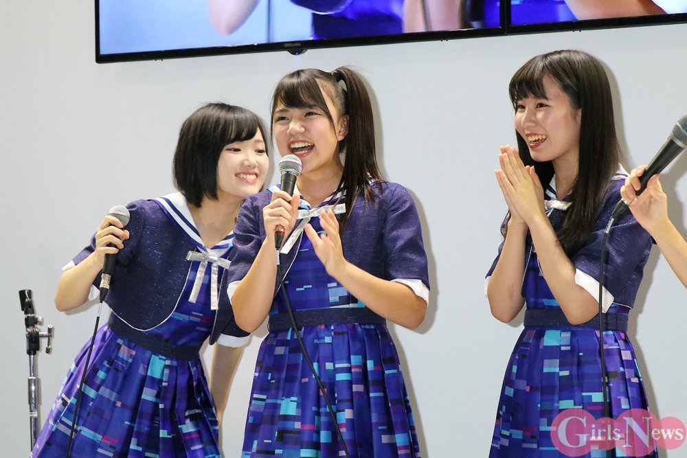 作品は毎週更新されるメンバーそれぞれの個性溢れる内容で、あまりの臨場感に最後に彼女たちと別れるシーンに切なさを感じるほど。「会いたくなったら何度でも繰り返して見てもらえれば」と3人は自信を持って勧めた。トークを終えた3人は透明な歌声も披露して魅力をアピールし、試遊機に並ぶ来場者に笑顔で名刺を配っていた。
