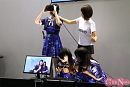 TeamDリーダーの佐藤さんが、ヘッドマウントディスプレイを装着して体験してみると、実際に目の前に現れたかのような他のメンバーの姿に「わっ!近い!!」とビックリ。さらに“アイドルの香り”にもうっとりしたようで「シャンプーみたいな女の子の香り。思わず、クンカクンカしちゃいますね」と感想を漏らしていた。