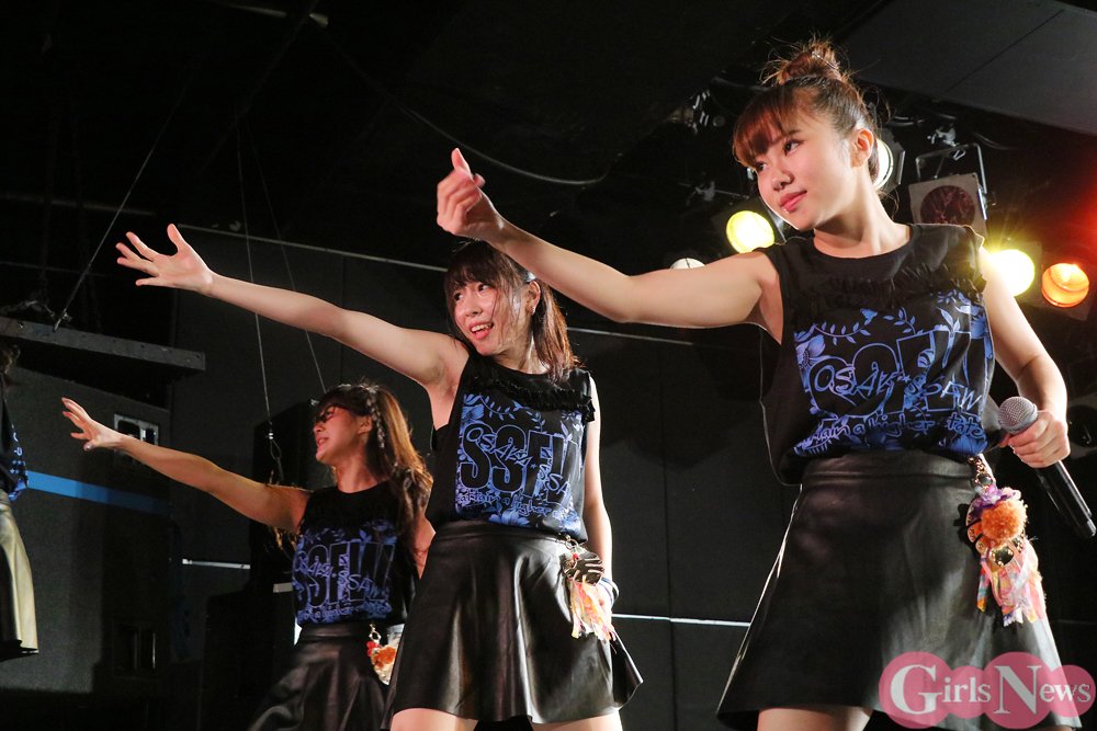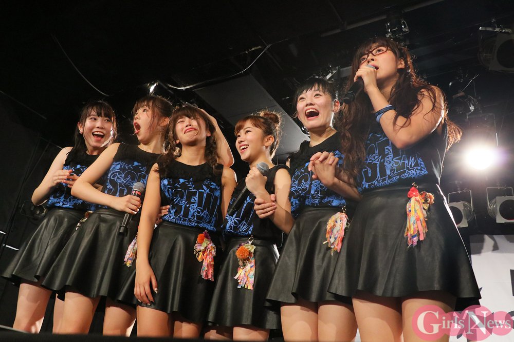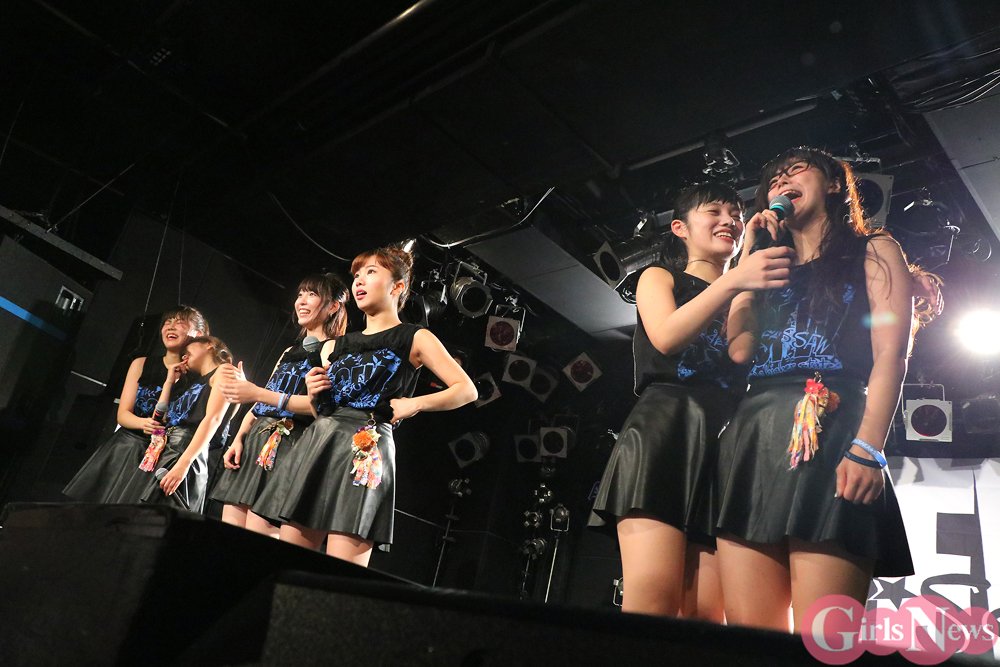 しゅかしゅんは大阪に事務所を置きつつ、東京でも1年前から寮を構え積極的な活動をしている。リーダーの小川舞奈(MAINA)さんは挨拶のあとのMCで「芸能界に入って東京に住むことが一つの目標だったので、この1年がすごく嬉しい。東京は発信のペースがすごく早くて、私たちの発信することからも次から次に新しい発信が生まれるので、モチベーションが上がります」と話すと、芳森由奈(YUNA)さんも「発信するとすごいスピードで反応される。経済が進むのが早い!」と驚きを口にした。