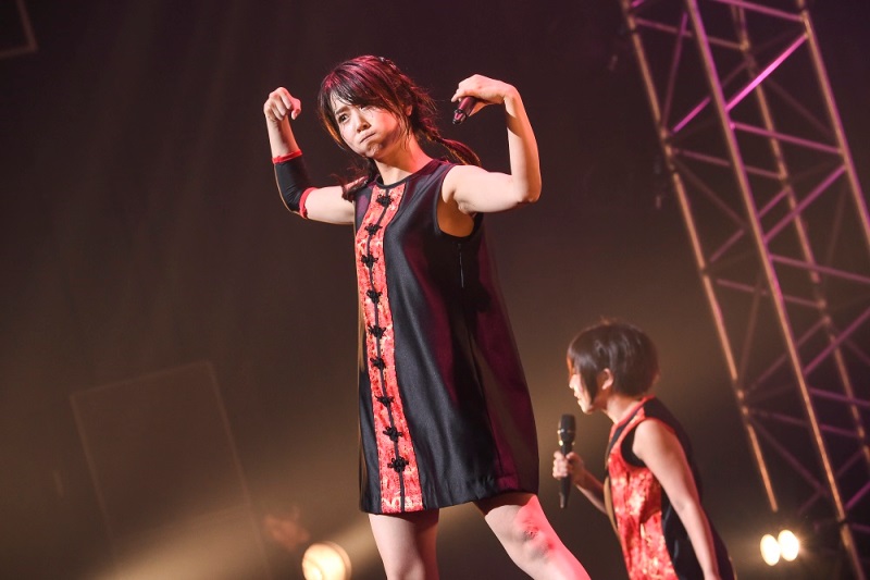 後半、ニューシングル『絆ミックス』を披露したのに続き、12月6日発売の新曲『反抗声明』へ。テレビ東京系アニメ『銀魂』ポロリ篇EDテーマになったことを改めて報告し、「カンフーの動きを取り入れた」というダンスが印象的な振付を観客とともに楽しんだ。
