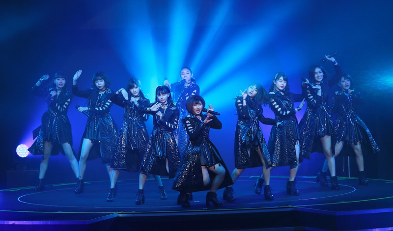 後半は白い衣装をまとったメンバーが『次々続々』を皮切りに、9曲をほぼノンストップで熱演。楽曲によっては舞台中央の円形がメンバーをのせて高々とリフトアップし、2階の観客席にも近い位置で10人のパフォーマンスが繰り広げられた。アンジュルム史上初の10人構成で楽曲ごとのフォーメーションもより迫力のあるものになり、持ち前の攻めのナンバー群で会場のボルテージは最高潮に。ラストの『大器晩成』まで一気に突っ走り、本編は締めくくられた。