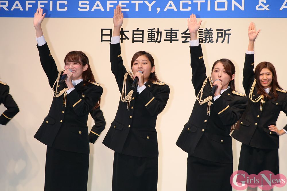 同グループはこれまで、都内で行われた交通安全キャンペーンのイベント等に数多く出演し、今年9月には警視庁新宿警察署より感謝状を受けている。今回も警視庁の制服(礼服)を着用して登場し、歌詞や振付に交通安全を意識した箇所が多く盛り込まれているオリジナルソングと共に、交通安全の大切さを来場した家族連れらにアピールした。