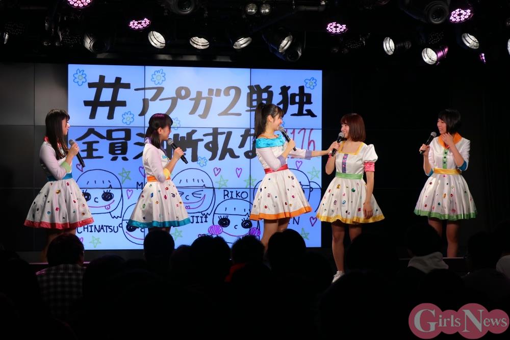 そして、「私たちはアプガ姐さんの半分の3年で武道館に立つことを目標にしているんですけど、今日よりもっと大きなステージでライブをして、もっとたくさんの人と楽しい空間を作りたい。2018年の目標は赤坂BLITZで単独ライブがしたいし、私たちの曲だけでライブが出来たらなと思う。今日のライブをやってみて、私たちならアプガ姐さんを超えられると思ったので、いつかは追い越して、アップアップガールズと言えば、(2)と言われるよになりたいです!」と決意を新たにした。
