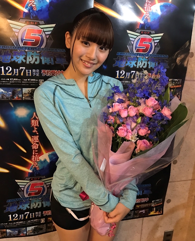 浅川さんにとって初のゲームCM出演作となる本作。髪形をツインテールにし『地球防衛軍5』のコスチュームを身にまとった浅川さんの姿や、