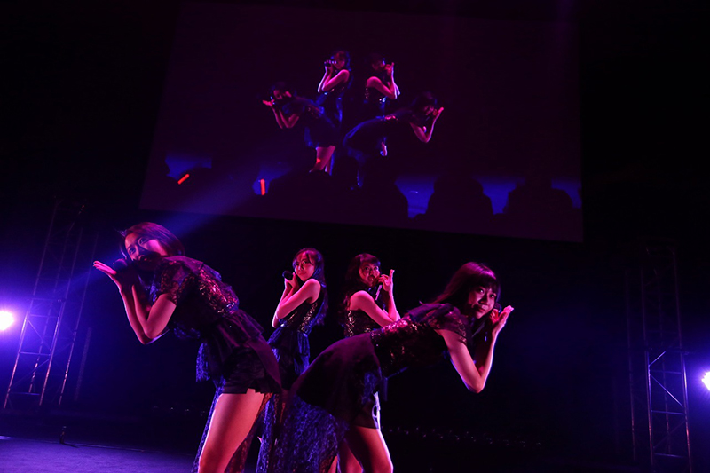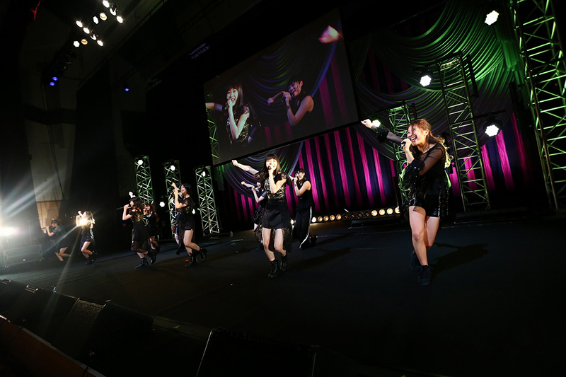この日2度目の登場となったのは、大阪女子流<Rename from 東京女子流>。卓越したダンス & ボーカルに会場中を釘付けに。また黒い衣装と舞台背景がより大人っぽさを演出していた。『鼓動の秘密』『雨と雫』など人気チューンを披露したあと、「イベントに呼んでくれた、たこやきレインボーにお礼を言いたい」とたこ虹を招き入れ、『おんなじキモチ』をコラボ。9人によるダイナミックかつ呼吸がぴったりとあったダンスアクションを見せ、女子流の中江友梨は「次は、たこやきレインボーに東京へ来ていただきたい」と自分たちのイベントへの出演をオファーしていた。