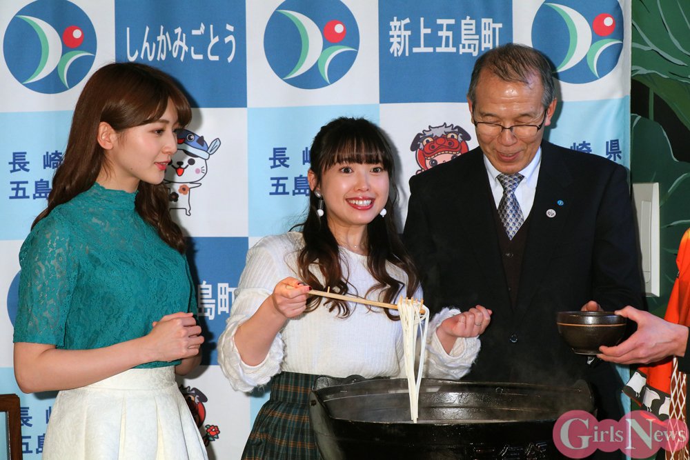 アプガ(仮)森咲樹「うどんがトゥルットゥル!」と特産品にご満悦 元℃-ute中島早貴と共に長崎新上五島のアンバサダーに