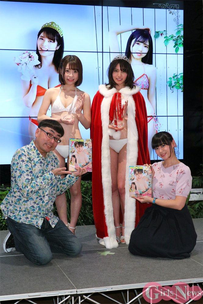 グラビアページも充実の青年コミック誌『ヤングアニマル』(白泉社)の主催による次世代グラビアクイーン『YAグラ姫2018』のお披露目会が9日、DMM.com本社で行われ、グランプリを獲得した MIYU(CHERRSEE)と、準グランプリの池田優花(桃色革命)がマスコミにお披露目された。
