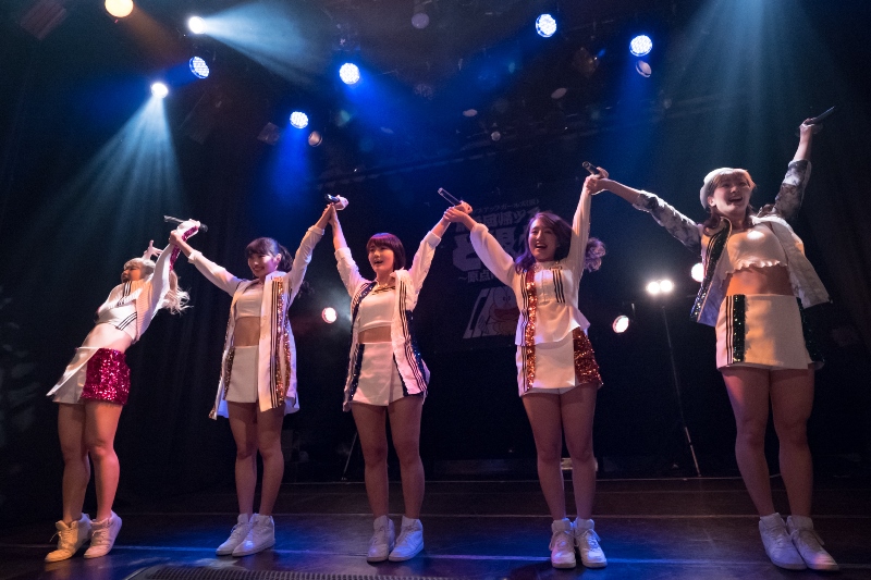 ライブ終盤では、『アッパーレー』で、アプガ(2)の橋村理子さん、アプガ(プロレス)の4人がステージに登場。総勢10人で、ステージを縦横無尽に走り回っての大騒ぎ。観客もヒートアップして、会場は強烈な熱気につつまれることとなった。