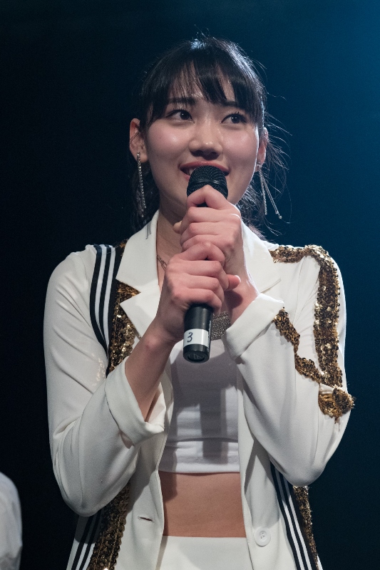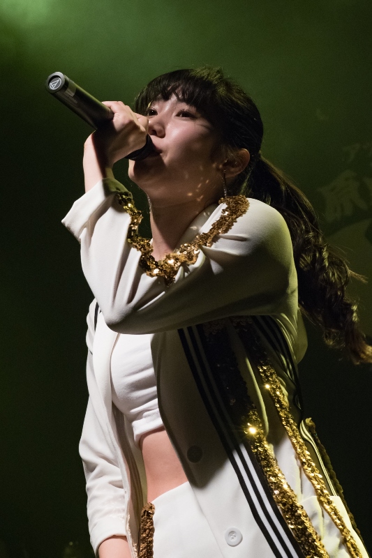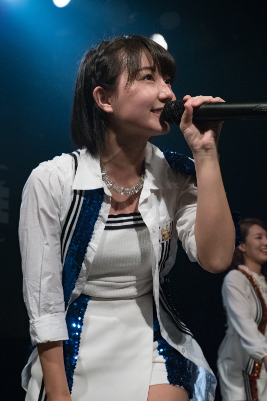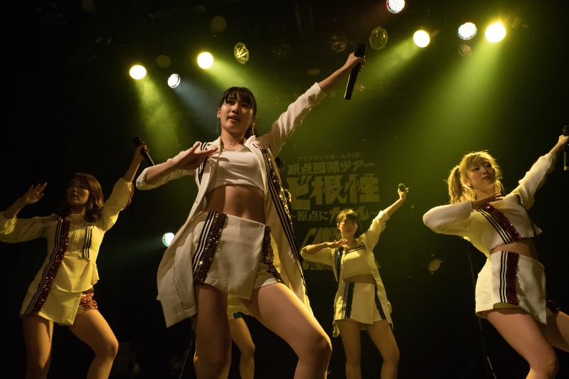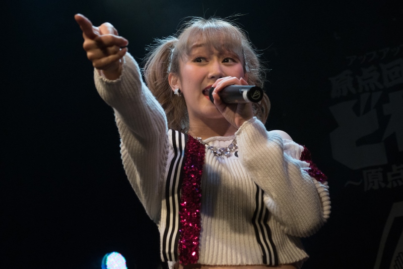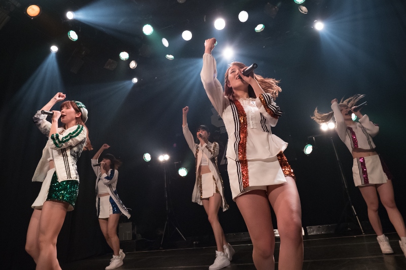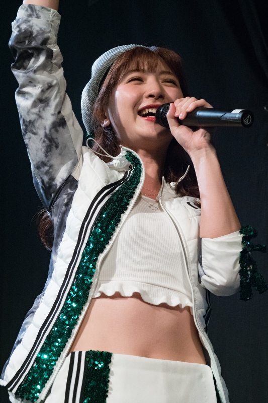 ライブは『上々ド根性』から威勢よく始まり、『パーリーピーポーエイリアン』でフロアをクレイジーなパーティ状態にしていた。回替わりのコーナーでは、東京出身の佐保明梨さんがひとりで、ソロ曲『Show Time』を歌唱する。続けて「!!!!!!!!」をソロで歌い、途中からメンバーが合流してメンバー全員でのパフォーマンスを見せた。