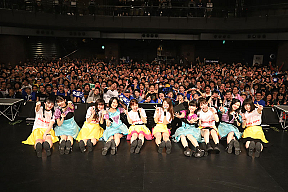 本編が終わると、東京女子流も再度ステージに呼び出され、やり直しのコラボ1曲を披露した後のMCでは、大阪☆春夏秋冬にサプライズ発表があり、次のライブ会場都市をルーレットで決めるという試みが。予定外の事にメンバーも困惑しながら投じた場所は「九州」に決定。