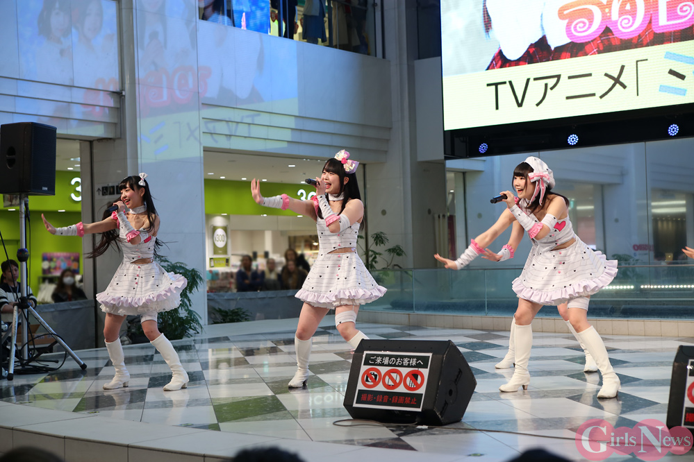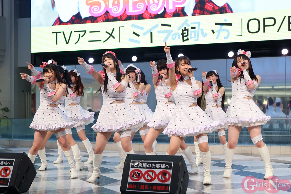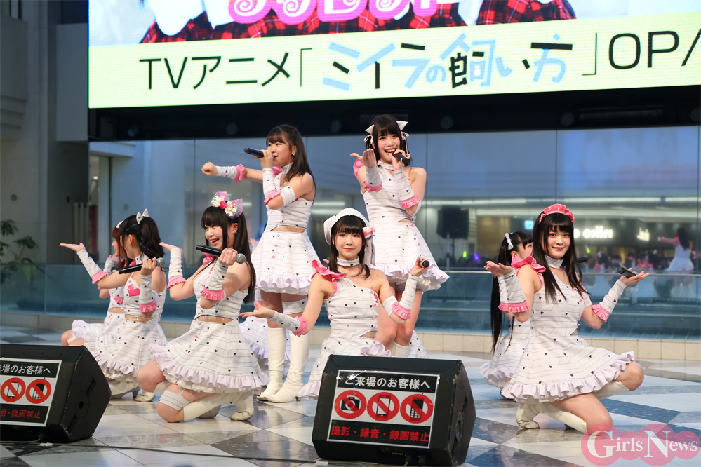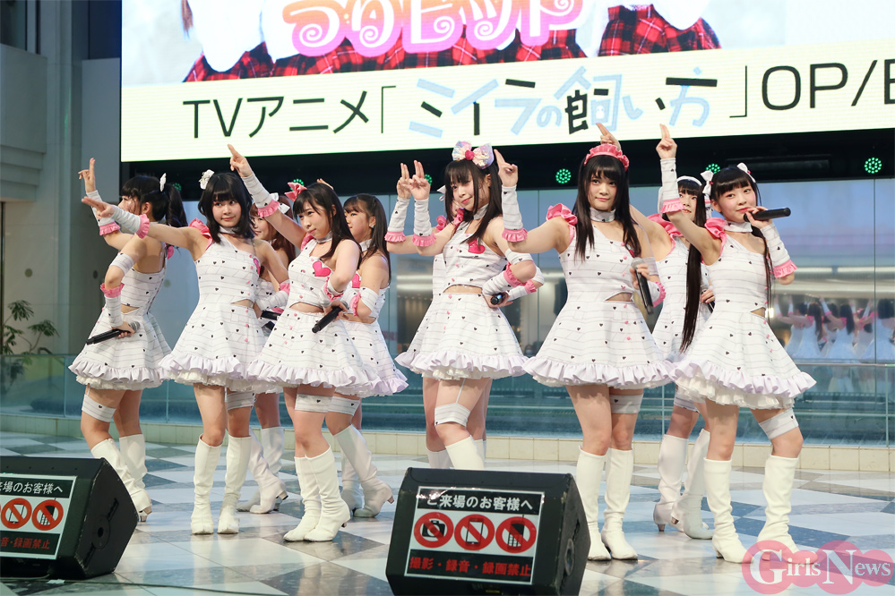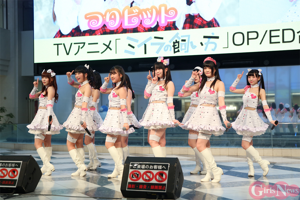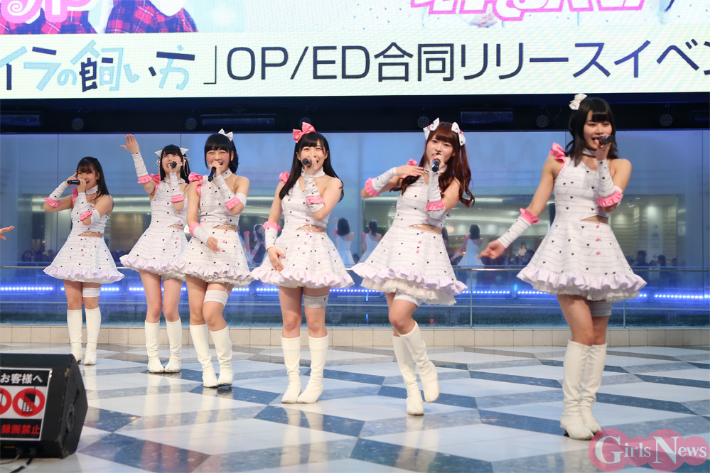 テレビアニメ『ミイラの飼い方』オープニングテーマを歌う「つりビット」と、同エンディングテーマを歌う「イケてるハーツ」が9日、池袋サンシャインシティ噴水広場で、合同のCDリリースイベントを開催した。