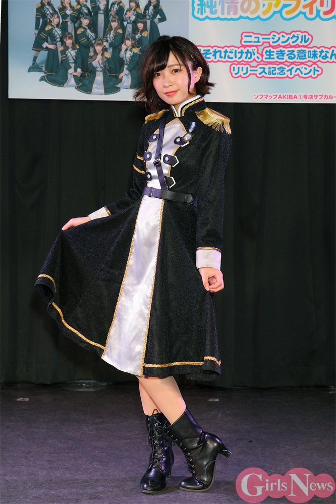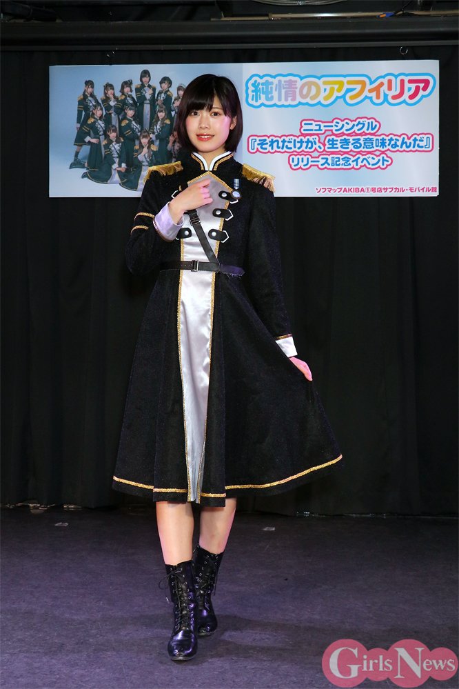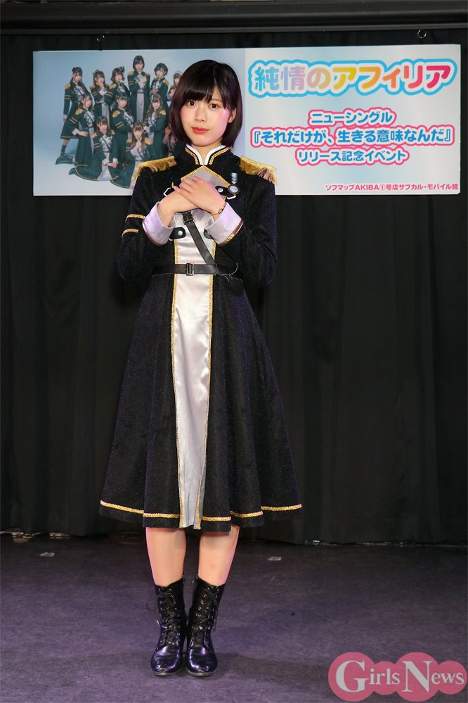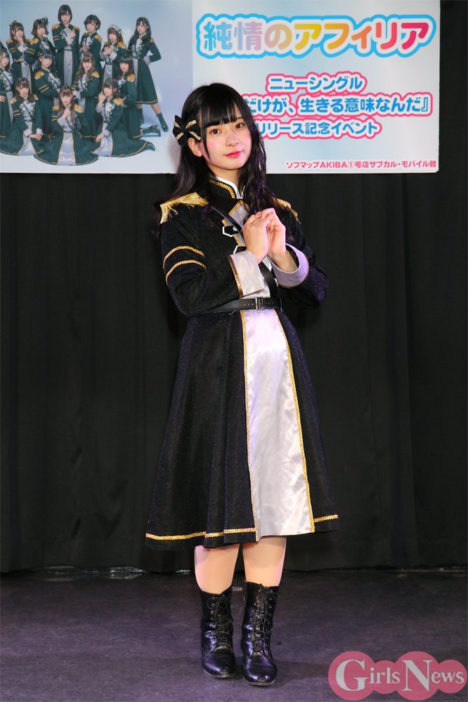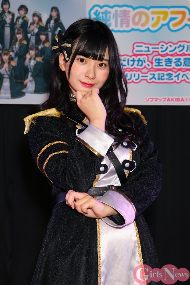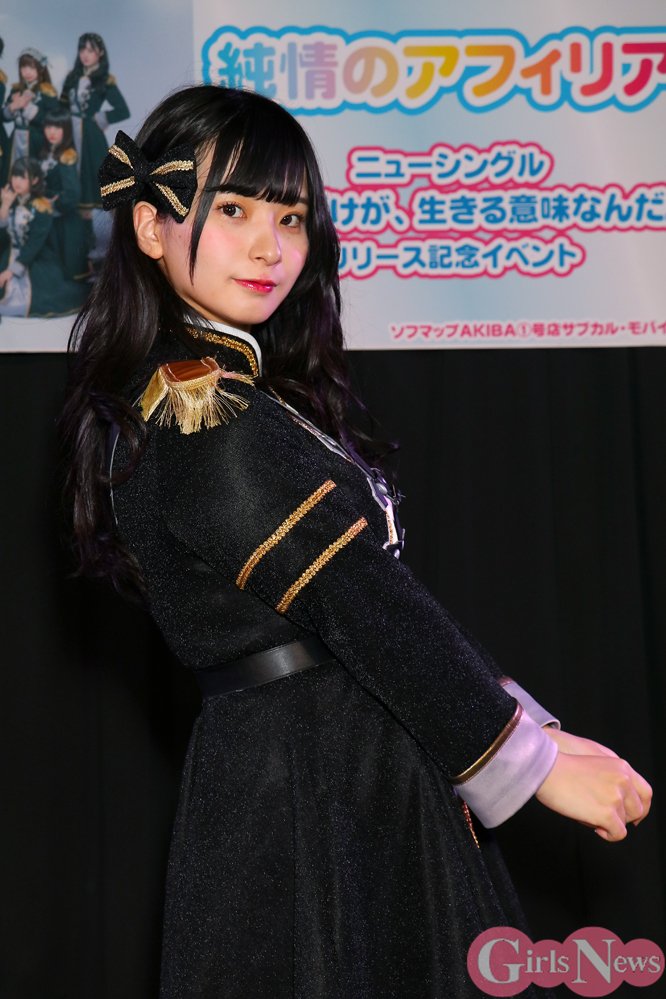 ベール「私は純情のアフィリアに入るまでは、代表曲ぐらいしか知らなかったんですけど、カップリング曲などにも触れるようになって“こんなにいい歌がいっぱいあったんだ”って、すごく感動しました。まだ自分が踊れない曲はステージの袖から先輩メンバーを見ているんですけど、その姿を見ていて“アフィリアって、こんなにキラキラして輝いているグループなんだ”って、改めて知ることが出来ました。ここに自分がいるからには、もっと自覚を持って皆さんに追いつくようにレベルを上げていかなきゃと思います」