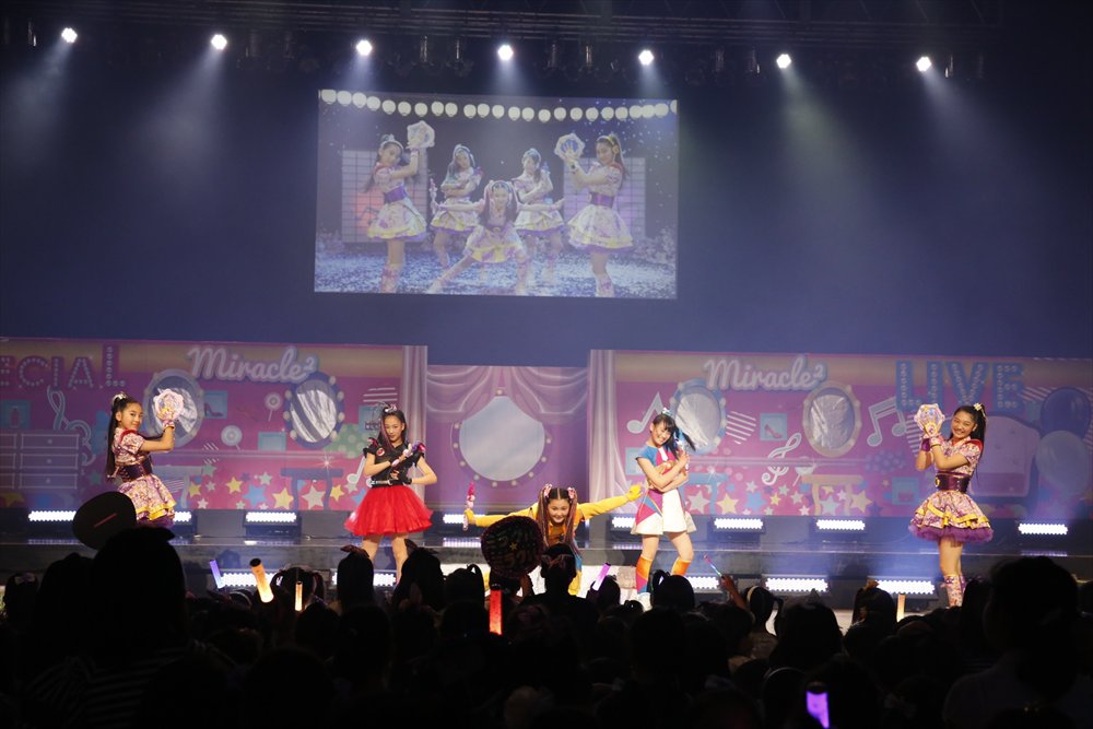 会場の客席は前方がお子様専用エリアとなり、市販や手作りのコスチュームでドレスアップした子供たちが開演前からBGMのテーマ曲に合わせて大合唱をして、miracle2の登場を待ちわびた。やがて開演時間となり5人がステージに登場すると、子供たちはメンバーの名前を口々に呼んで大歓声を上げた。