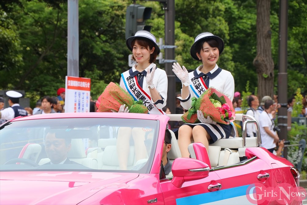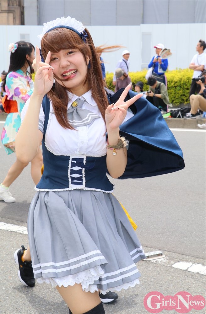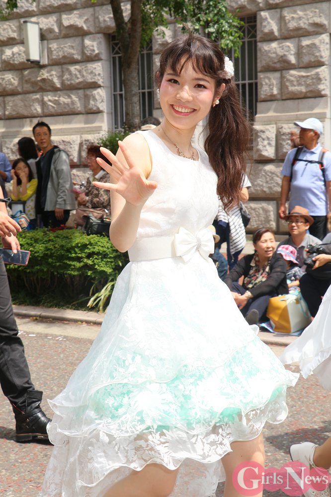 「今回初めてパレードに参加させていただいたのですが、男女問わず、ちっちゃい子からお年寄りの方までたくさんの人が見に来てくださいました。朝方まで心配していた雨も上がって、歩いていると暑かったのですが、みなさん笑顔で手を振ってくださったり、いっぱい写真を撮っていただいたりして、すごく楽しかったです!」