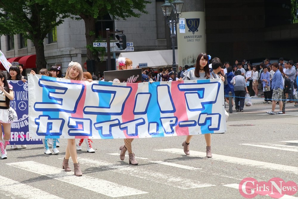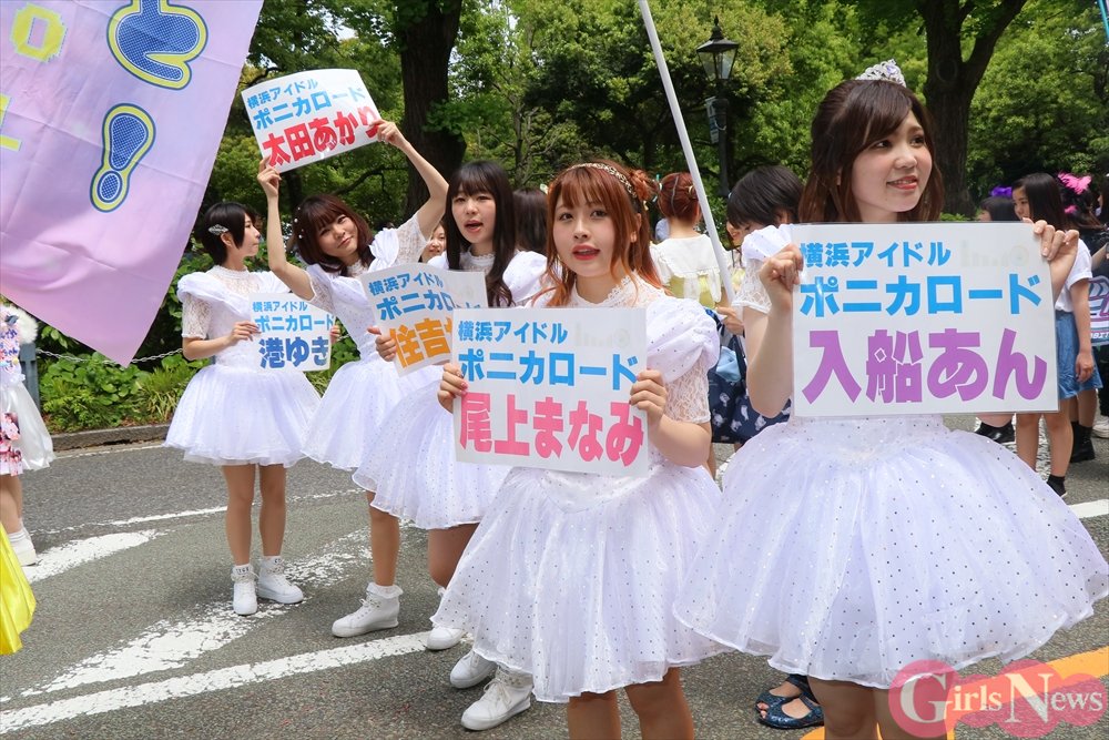 横浜に夏の到来を告げる風物詩「ザよこはまパレード」が3日に開催され、ディアステージ所属のグループや、愛乙女☆DOLL、純情のアフィリア、ご当地アイドルのポニカロード、川崎純情小町☆などのアイドルが「ヨコハマカワイイパレード」の一員として参加した。