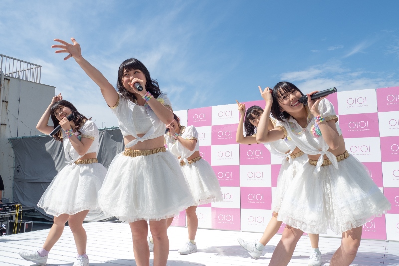 その後ステージには、先日の初単独ライブの際にサプライズ発表された新メンバー、中川千尋さん、佐々木ほのかさんも登場。自己紹介を兼ねてそれぞれの特技、中川さんは英語で挨拶、佐々木さんは空手の突きを披露した。そして、メンバー5 人は、クールでアグレシッブなダンスチューン『っていう初恋のお約束』を歌唱すると、観客のテンションもマックスとなってイベントは締めくくられた。