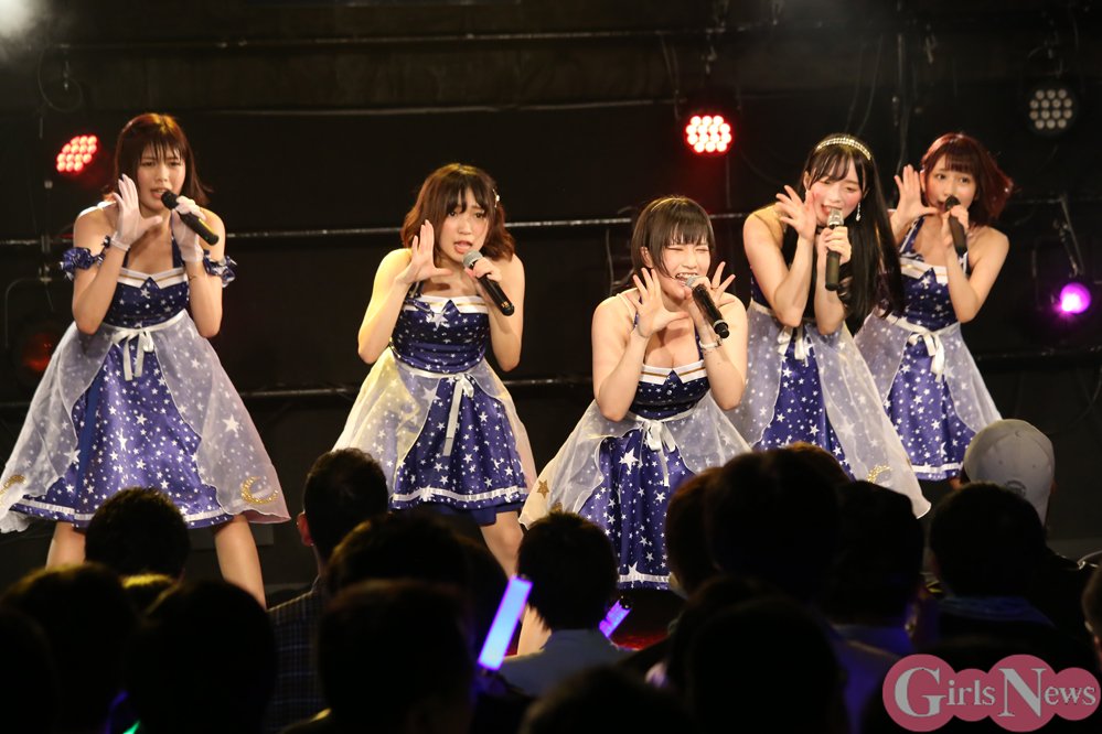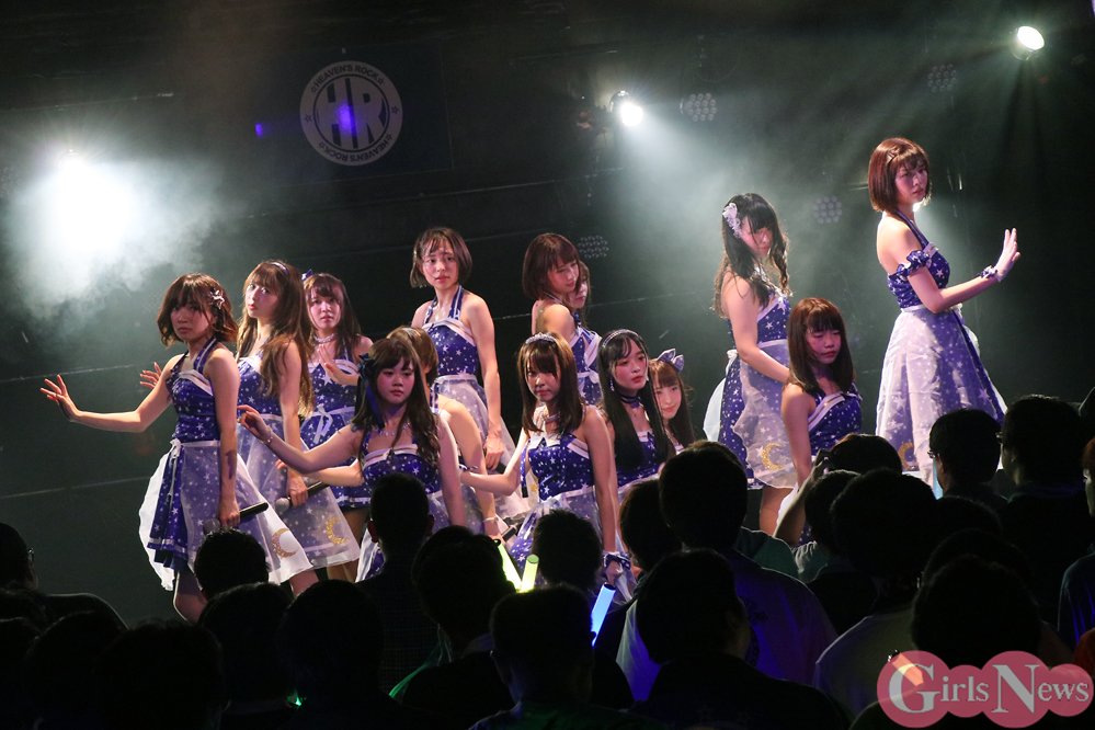 また、ライブ後半で披露する新衣装は、ツアーのテーマ曲「Spiral Star」に因んでか、星をモチーフにした衣装となっている。14人のメンバーが横にズラリと並ぶと天の川のようで、客席のペンライトとともに幻想的な光景が目に映った。