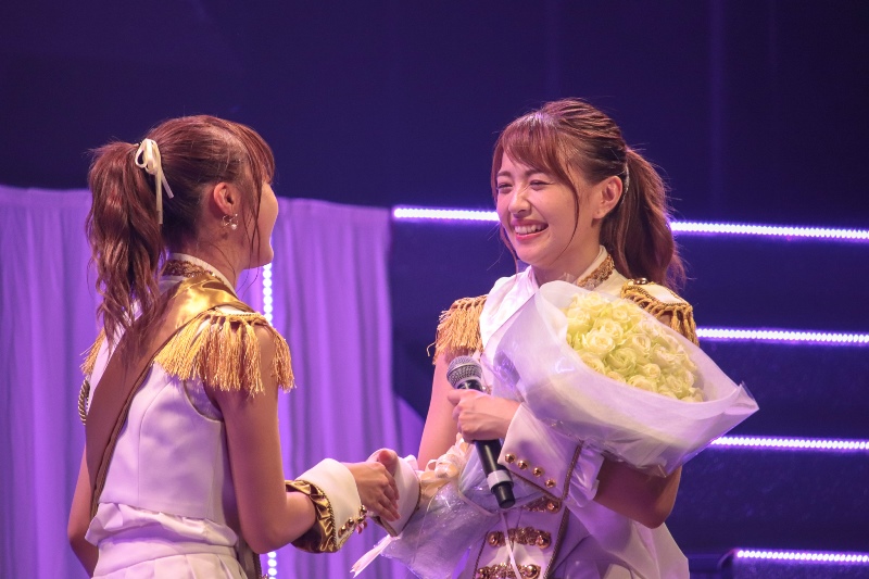 その後、メンバー一人一人からのメッセージ。リーダーの溝手るかさんは「たそ(志村)は『8年間もSUPER☆GiRLSにいさせてくれてありがとう』って言うけど、8年間たそがSUPER☆GiRLSを支えてくれたから、私も今ここにいるし、今のSUPER☆GiRLSがあると思います。私がリーダーになった時、たくさん支えてくれてありがとう。たそがいなくても『るかちゃん大丈夫だな』って思ってもらえるように、これからも頑張ります。たそも新しい道で頑張ってね!応援してます。今までありがとう」と大粒の涙を流しながら語りかけた。