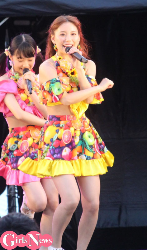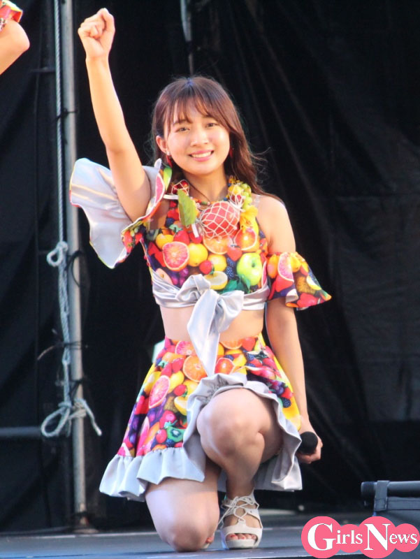 この日、メインステージの“横丁1番地”に登場したスパガ。冒頭、「アイドルの花道を突き進むことを誓います!」とリーダーの溝手るかさんが宣誓し、『花道!!ア~ンビシャス』からスタート。『女子力←パラダイス 』『プリプリSUMMERキッス』といった夏の人気曲や新曲を次々と披露し、場内を一気に夏の空気いっぱいにした。