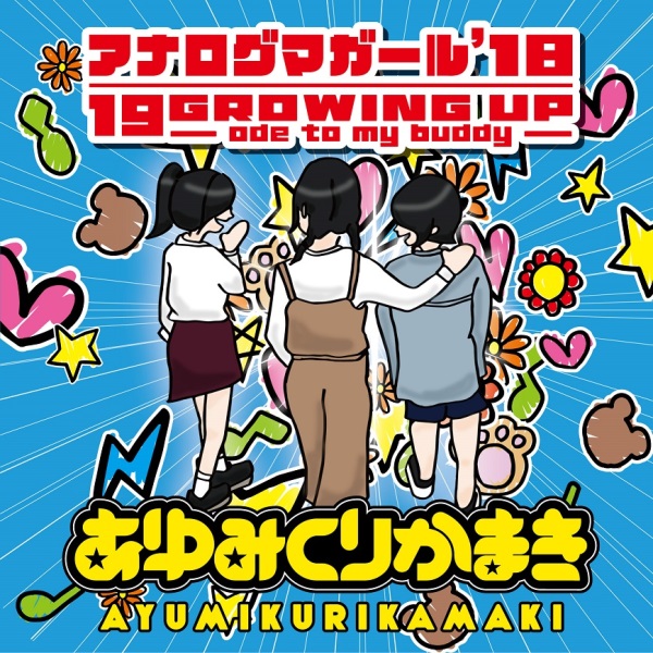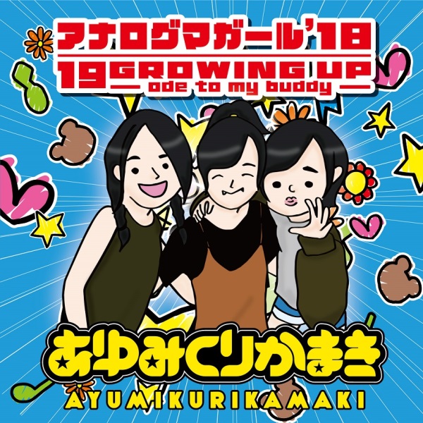 3人組ガールズグループ・あゆみくりかまきが27日のLINELIVEにて行われた「GOWGOW TV #18 〜新しい”○○写”解禁SP〜」にて、新ビジュアルと会場限定シングル『アナログマガール’18/19 GROWING UP-ode to my buddy-』のジャケット写真が公開された。