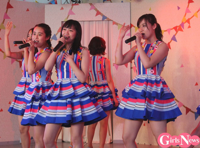 午前中のSKY STAGEでのライブに続き行われた、フジテレビ社屋内の「フジさんのヨコ」ステージ。『恋する夏』からスタートしたライブはスタート直後から熱気につつまれていた。