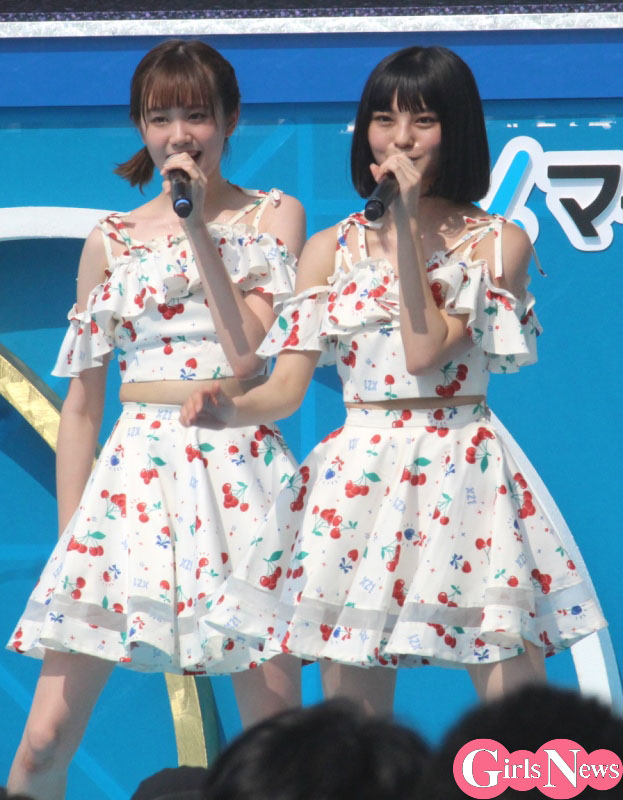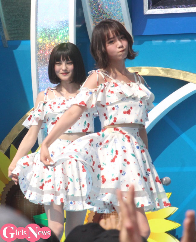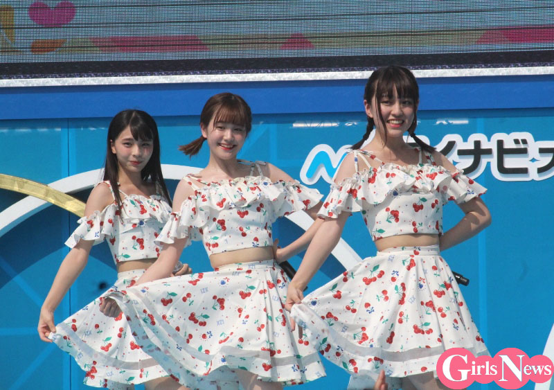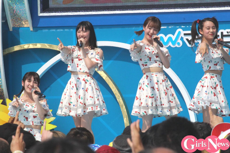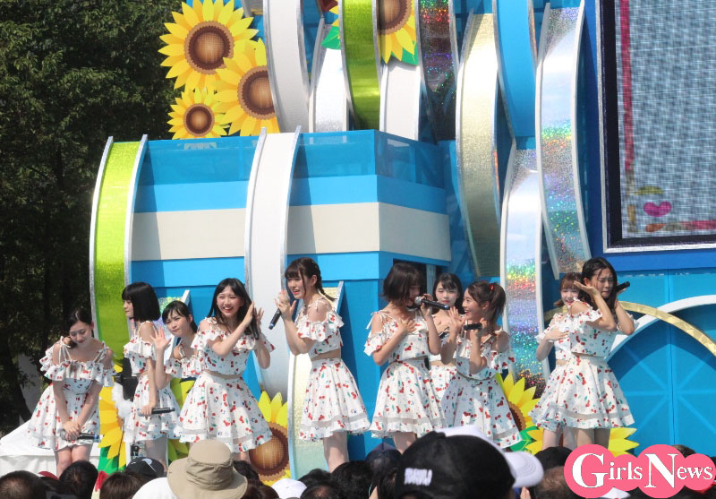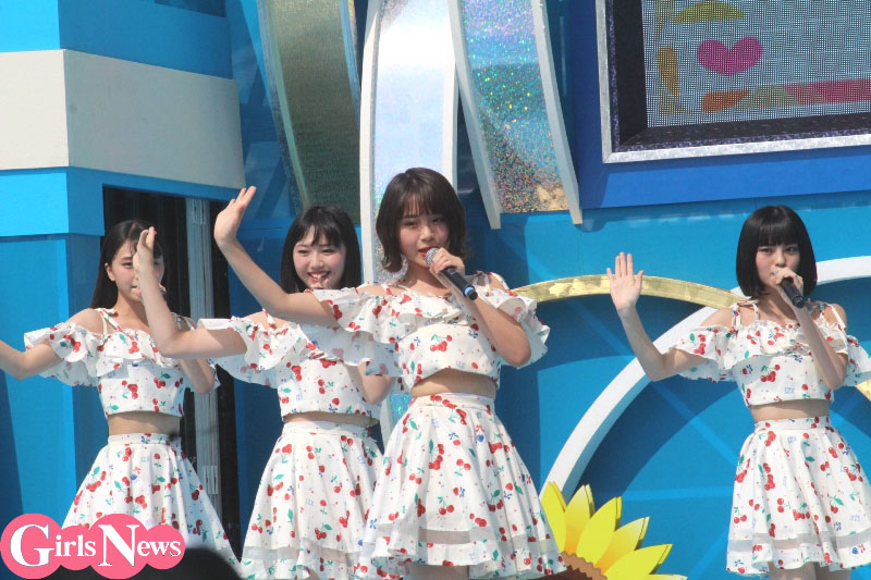 真夏の午後の太陽が容赦なく照りつける屋外でのライブで、涼やかな『夏だよ!!』の衣装で登場したメンバーたち。