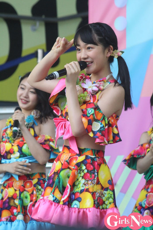 今回のTIFではトロピカル感満載の新曲衣装に身をつつんだメンバーたち。4日の野外ステージ「SMILE GARDEN」のライブでは、その新曲『ばぶりんスカッシュ!』をはじめ、『ラブサマ!!!』『キラキラ☆Sunshine』といった、スパガ王道の夏曲を披露。そして渡邉幸愛さんからの「今日初披露の曲です。心を込めて一生懸命歌いたいと思います」との紹介で歌われたのはCheeky Paradeの『Peace! Smile Girl』。先月解散した妹分グループの思いを引き継ぎ、歌うメンバーたちの姿にファンは大きく湧いた。