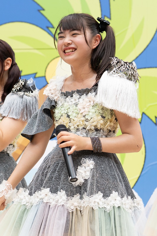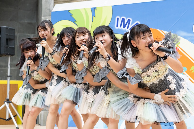 MCで、新井愛瞳さんがアプガ(2)をステージに呼び込むと、総勢12名で、アプガ(仮)が6月に発売したニューアルバム『5thアルバム(仮)』の中から『私達』を披露。挑み続ける思いを歌った楽曲で、アプガ(仮)とアプガ(2)と観客が一体となって熱く盛りあがりを作っていった。