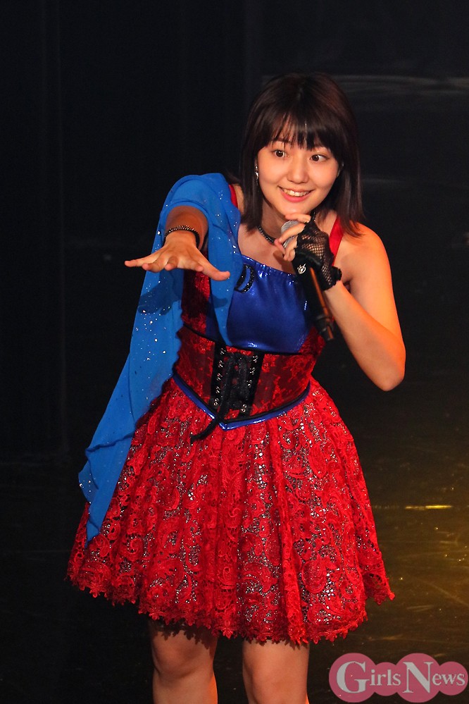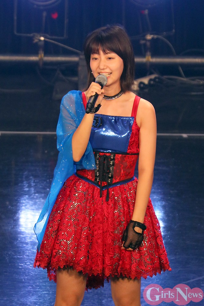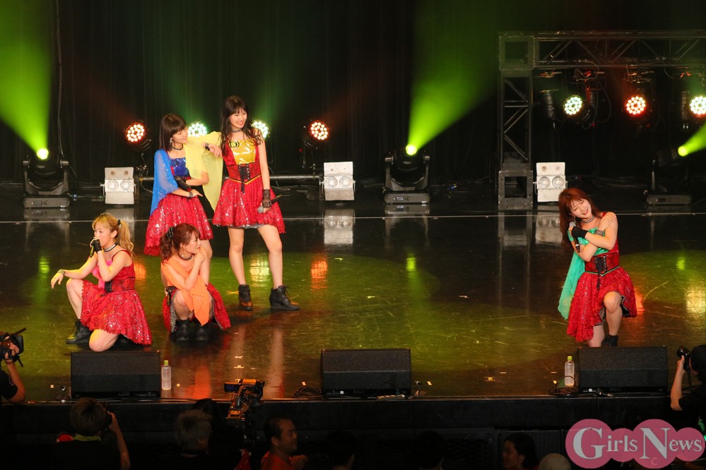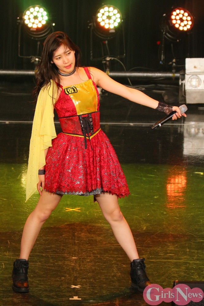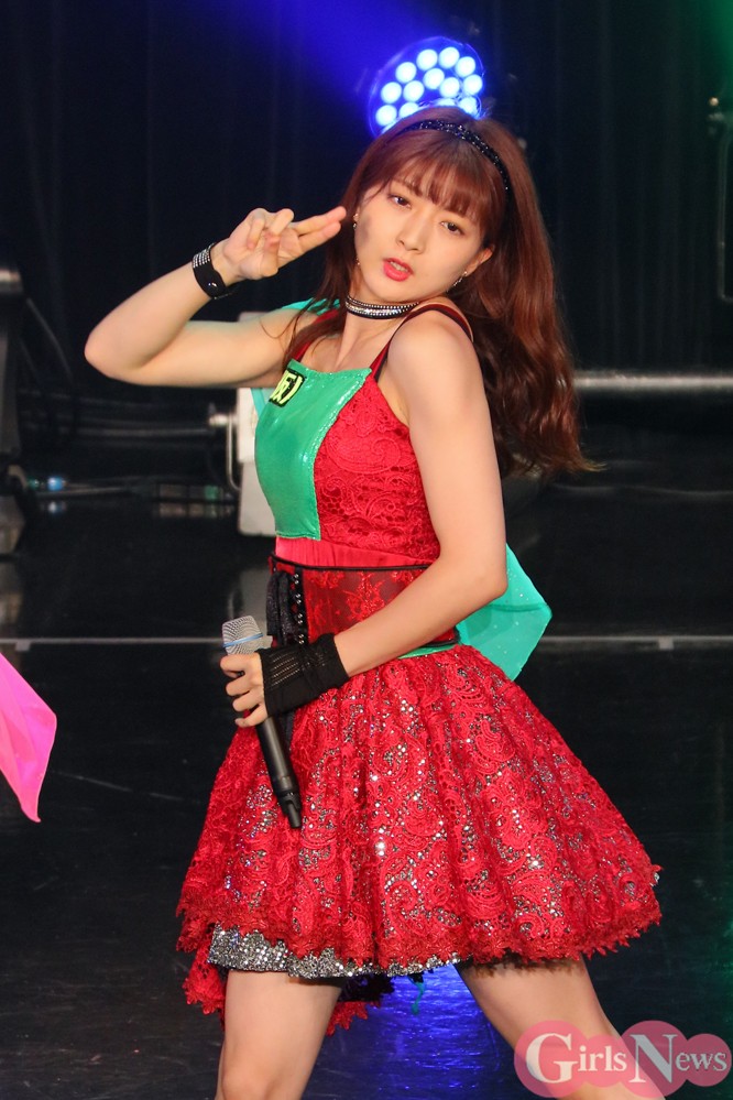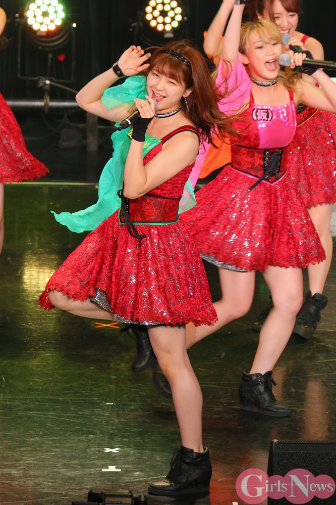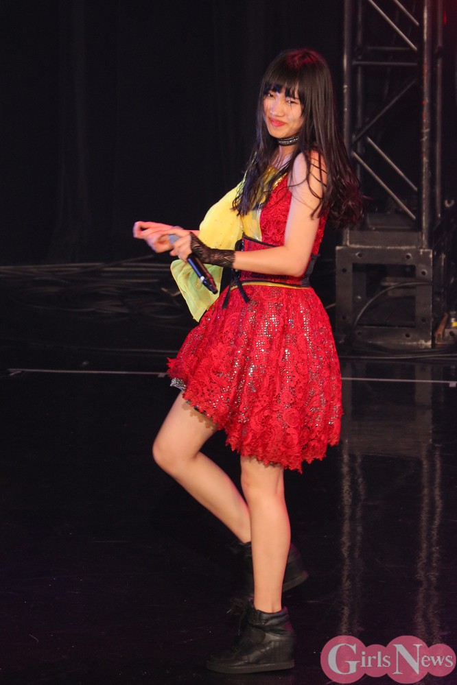 2日目にはメイン会場の「HOT STAGE」のトリ前に登場。闘志を感じさせる赤い衣装で、全力のパフォーマンスを繰り広げた。セットリストは、まず、『唇はナイフ』 『キラキラミライ』『ジャンパー!』『アッパーディスコ』 をノンストップで尻上がりのテンションで披露。