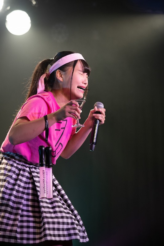 ラストに登場したのは、アプガ(2)のもうひとりの新メンバー、中川千尋。中学2年生13歳の彼女は、「君という仮説」を選曲。だが、緊張から1番の歌詞が飛び、歌えない状態になってしまう。なんとか挽回し最後まで歌い切った彼女に、観客から大歓声が送られた。歌い終えてコメントを求められると、抑えていた感情と涙が溢れ出す。「私は研修生活の1年間、この曲をずっと練習してきたのにステージに出たら緊張してできなくて、アイドル向いてないなって」と絶望を実感するコメント。続けて「この曲は歌詞がよくて、“君という世界見せてよ”ってフレーズで、私の世界を見せられるのかなと思ってたら、こんな世界でした」と語り、会場は大爆笑となった。