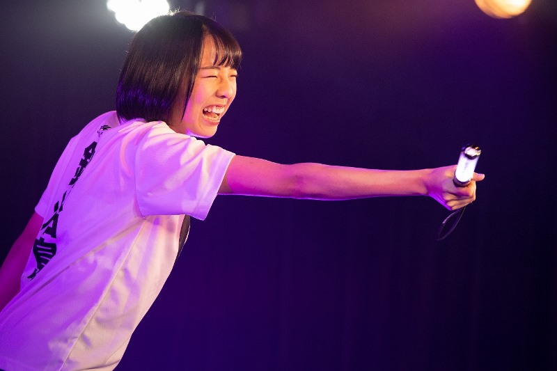 トップバッターは、アプガ(2)の新メンバー、佐々木ほのか。アプガグループの最年少で中学1年生12歳の彼女は、元気いっぱいに「リスペクトーキョー」を歌唱。ステージを動き回った彼女は「楽しかったです。ステージに出る10秒前に緊張したんですけど、ステージに出たらぶっ飛びました!」と笑顔でコメント。空手の黒帯の彼女は、アピールタイムで空手の型を披露した。
