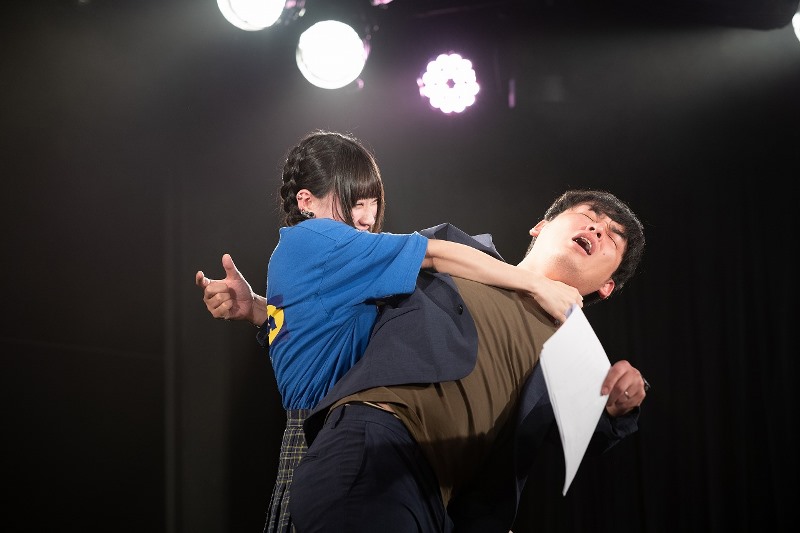 続いては、アプガ(プロレス)のミウ。アイドル好きの彼女は、アイドルオタク全開の衣装で「ワイドルセブン」をテンション高く歌う。すると曲中に「ここでゲテモノを食べます!」と宣言し、サソリを悲鳴をあげながら食べるパフォーマンス。アピールタイムでも再びサソリを、叫び声をあげながら食べ、必死の形相で「投票してください~」と観客に嘆願。アイドルとプロレスラーを両立する、強烈なファイティングスピリットを見せつけた。