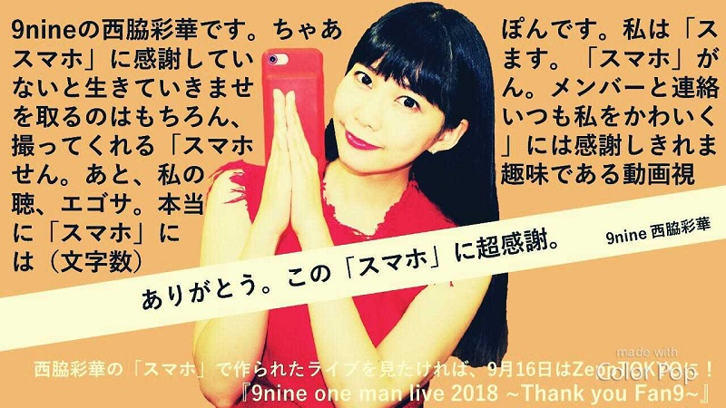 パフォーマンスガールズユニット・9nineが、16日に行われるZeppTOKYOでのライブに向けて、活動9周年目の感謝を伝えるユニークな「感謝ポスター」を制作した。