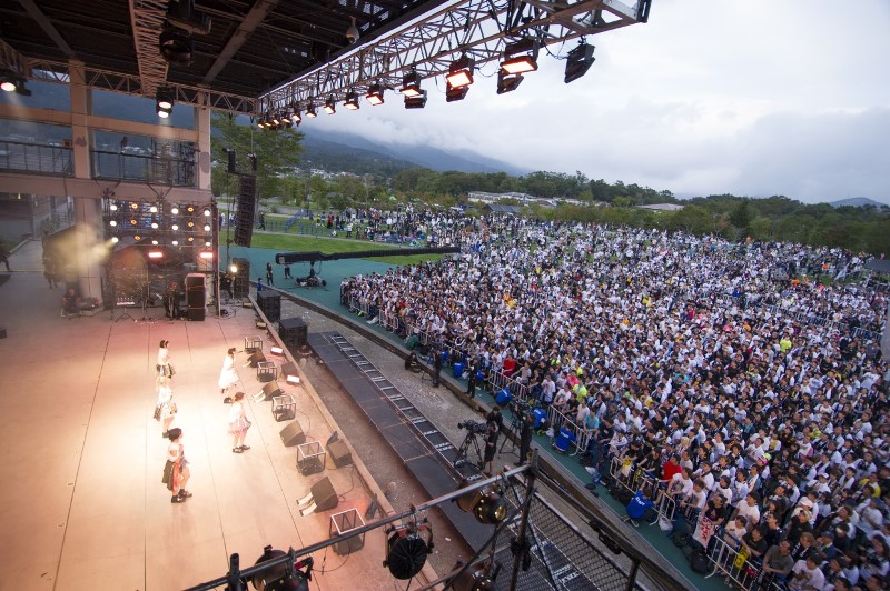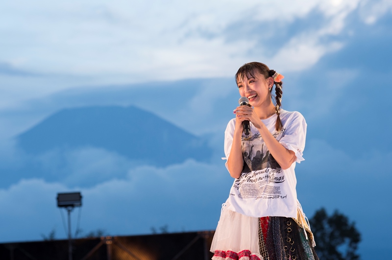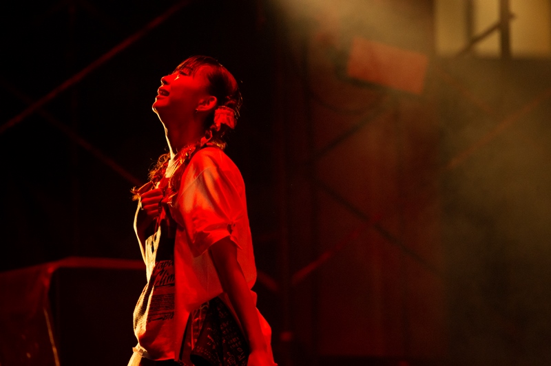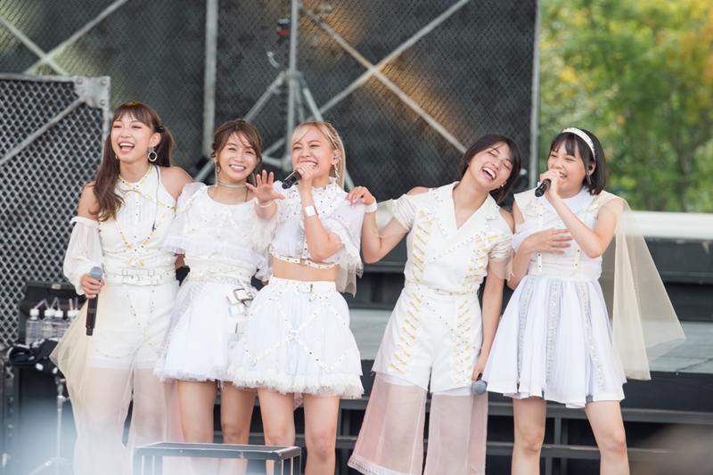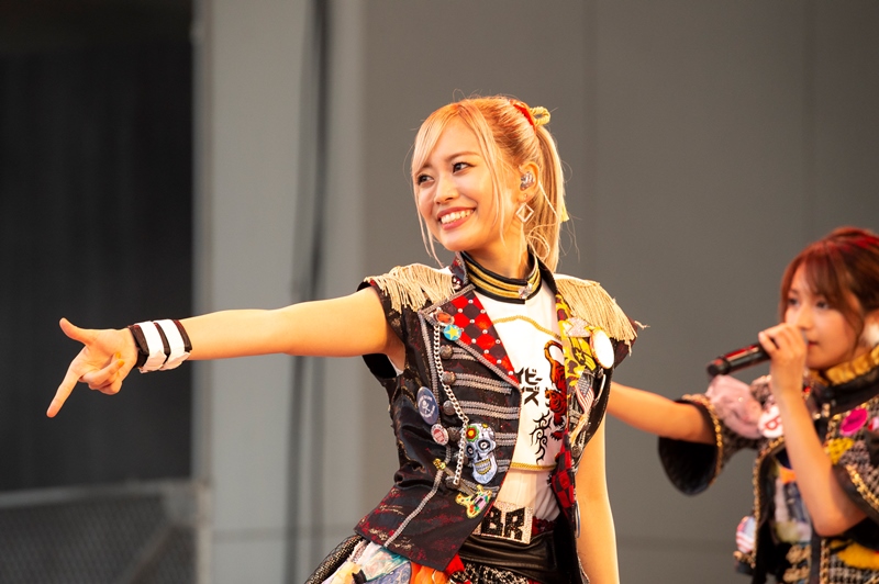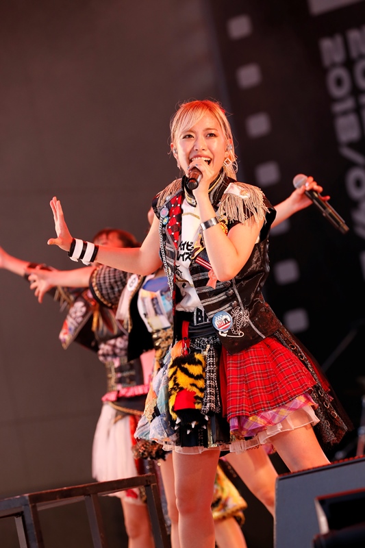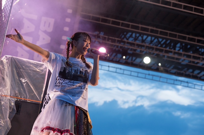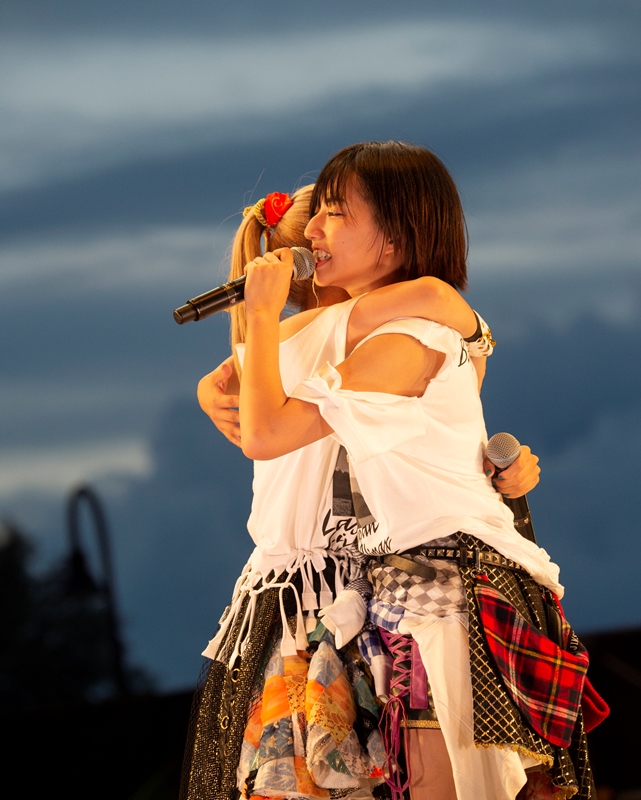 日も暮れかけてきて、大矢さんが「一人一人の顔を見ながら、クライマックスを楽しみます!最高の拳を上げろ!」と呼びかけると、『ベイビーレボリューション』からロックチューンが続き、客席のコールにも熱が入る。