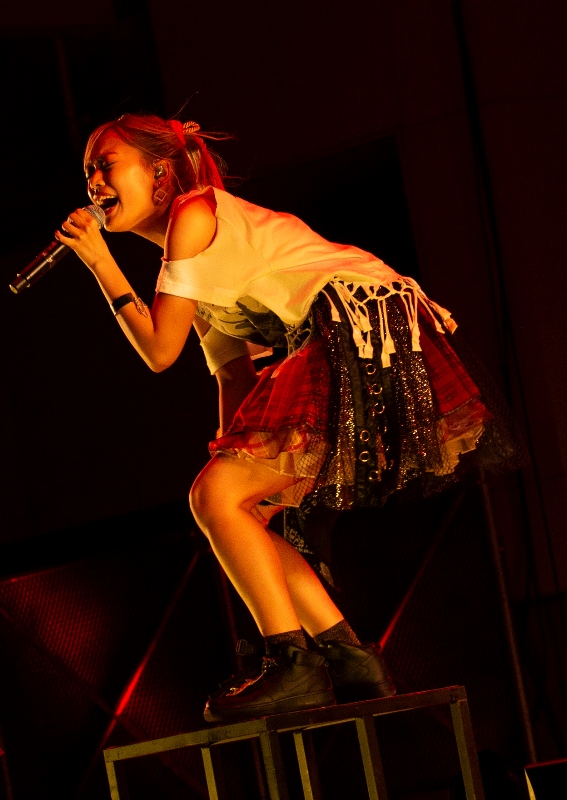 そこからは、前半戦のフィナーレへ。『Again and again』『JUMP』『ベイビーアンビシャス!』と畳み掛け、『ハッピーエンドレス』を優しく歌い上げ、ステージを後にした。